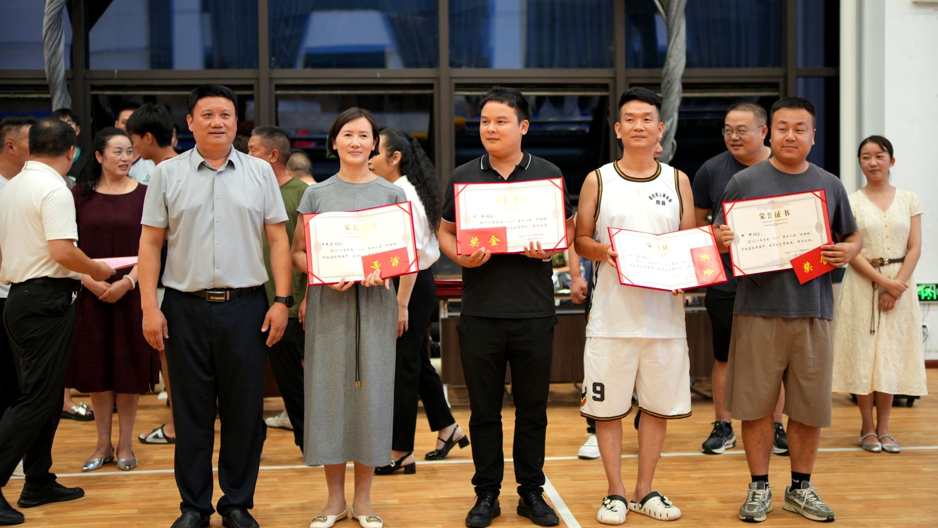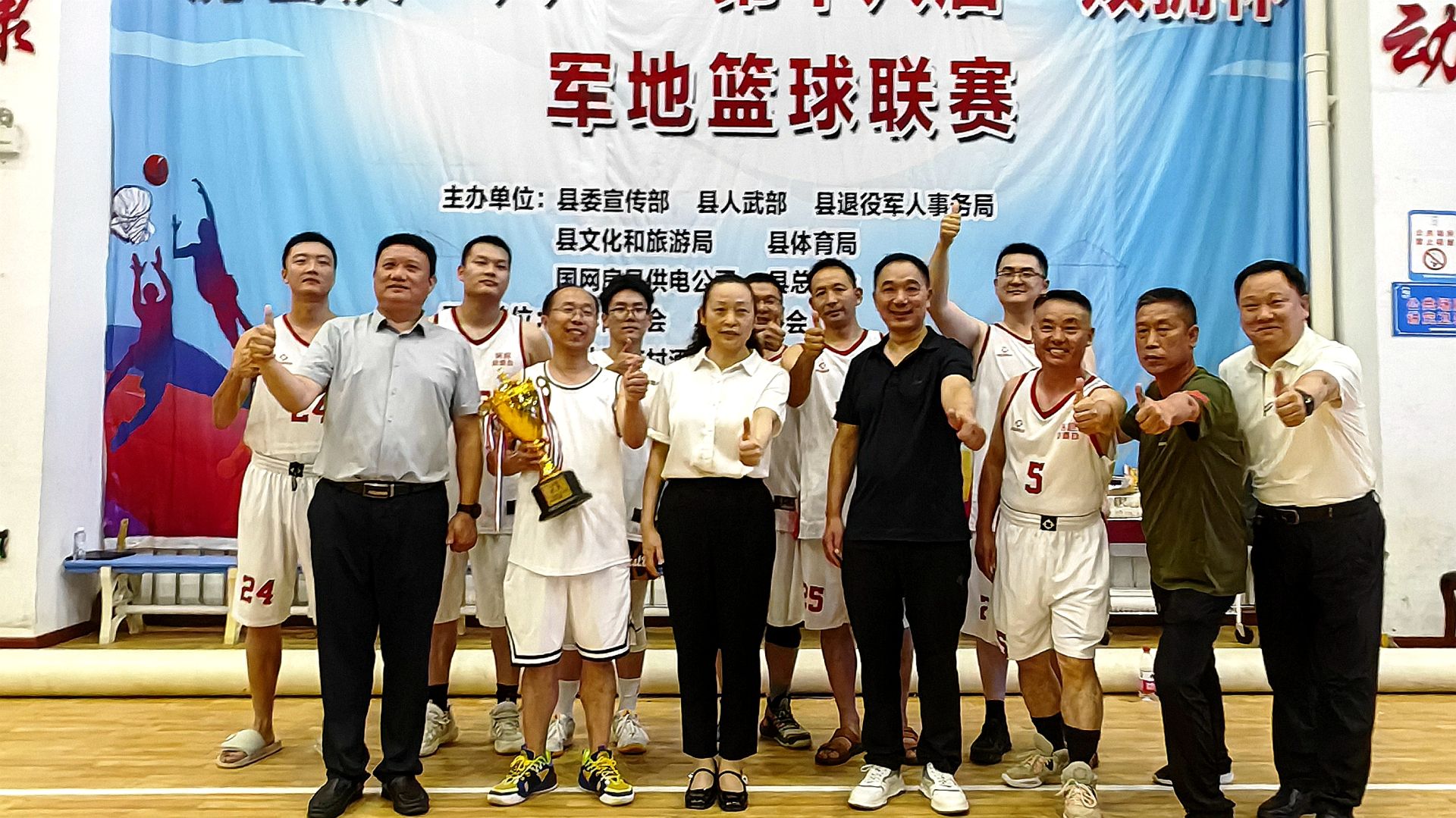房县新闻网讯 记者 秦珊珊 通讯员 吴丽丽 报道:7月30日晚,我县庆“八一”第十八届“双拥”杯军地篮球赛胜利闭幕。县委常委、宣传部部长王玲,县人武部部长刘鑫出席闭幕仪式,并为各获奖代表队颁发奖牌。