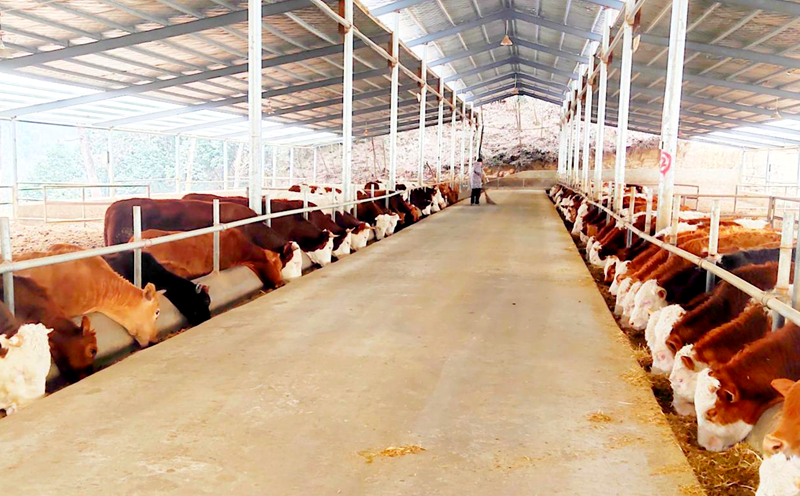 该农场在全县率先开展肉牛“床场一体化”养殖示范建设,建有双列式牛舍3栋5000平方米、青贮池1个1200立方米,产犊房、诊疗室、配料车间、消毒隔离栏等各类辅助设施用房一应俱全。现有西门塔尔肉牛300余头,能繁母牛100余头,牛场采用机械化、精准化饲喂模式,养殖过程基本实现了零排放无污染。