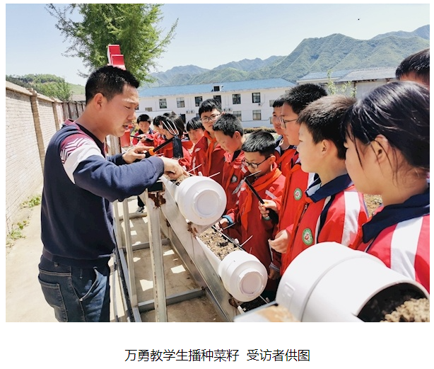 2017年,万勇被调到青峰小学任教,同时担任着数学、科学、心理教师和班主任的工作。校长惠虎还叮嘱他,要用年轻人的思维,多琢磨劳动教育的好法子。