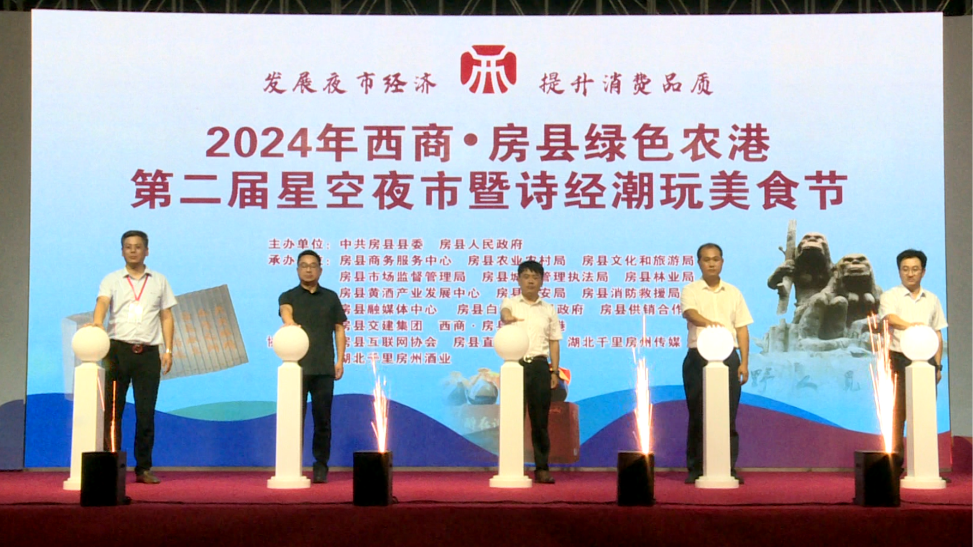 房县新闻网讯 记者 秦珊珊 报道:8月9日晚,西商▪房县绿色农港第二届星空夜市暨诗经潮玩美食节开幕。副县长安兵参加活动。