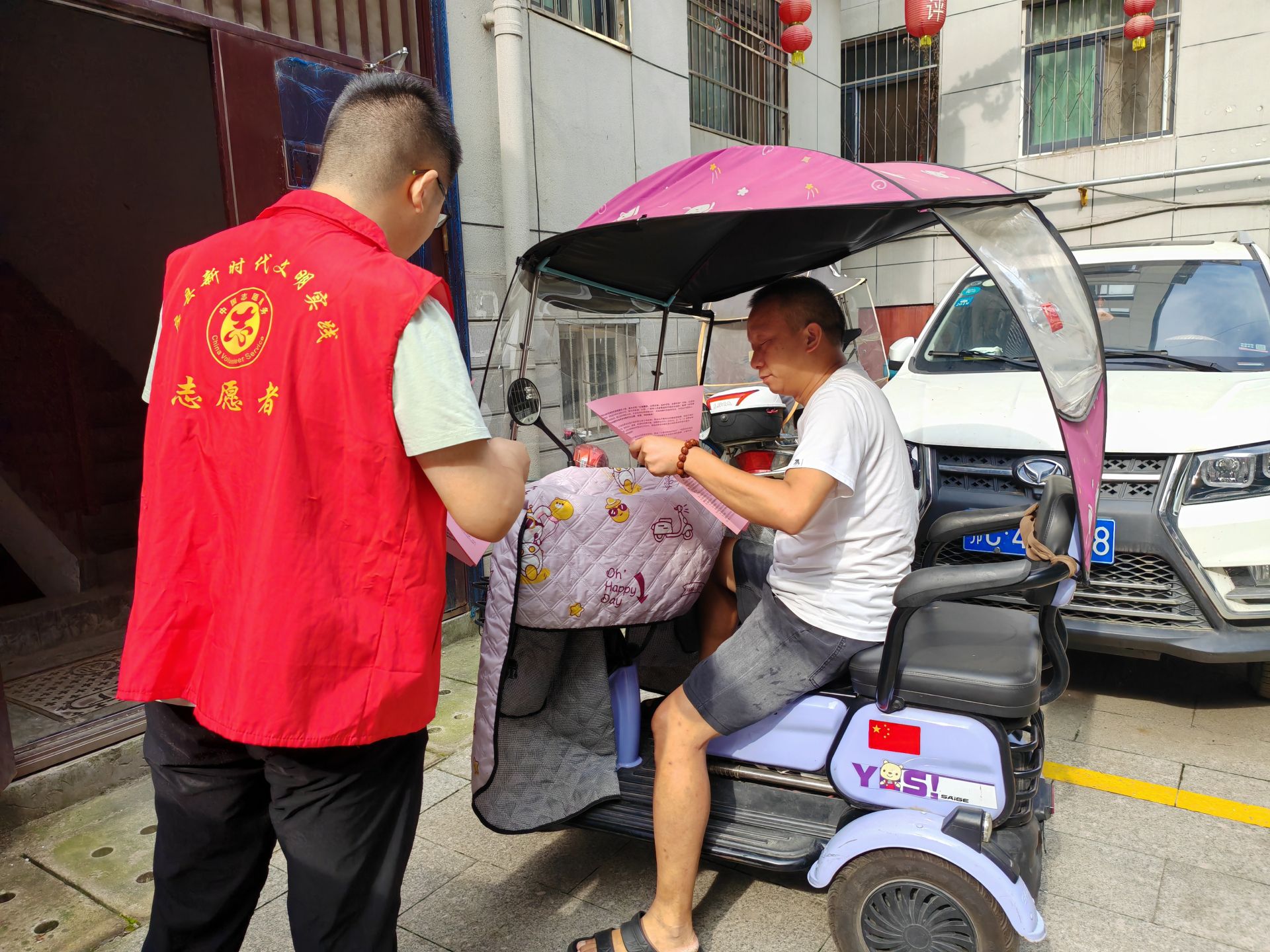 志愿者走进居民小区,挨家挨户入户宣传,确保文明宣传不漏一栋楼、一户人家。通过发放宣传资料、讲解创建文明城市的目的和意义以及如何参与、支持文明创建工作,号召小区居民发挥主人翁意识,从身边的小事做起。