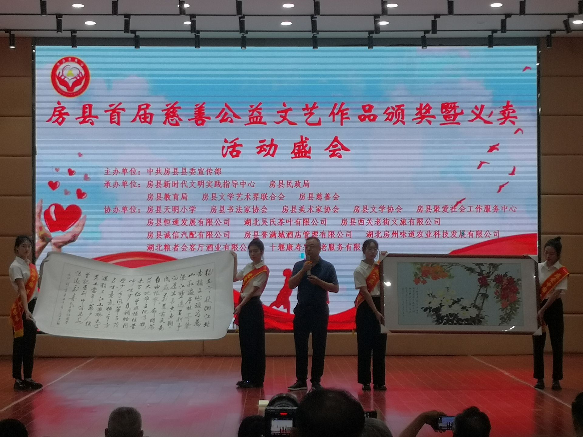 今年4月,房县新时代文明实践指导中心、民政局、文联、慈善会联合面向社会启动房县首届慈善公益文艺作品征集活动,得到社会各界广泛关注和积极响应,共收到文学、书画、短视频、摄影、手工作品等多门类文艺作品226件。为深入贯彻党的二十大精神和党的二十届三中全会精神,在9月5日我国第九个“中华慈善日”即将到来之际,由中共房县县委宣传部主办,房县新时代文明实践指导中心、民政局、文联、慈善会承办,房县书协、美协、作协、天明小学、西关老街文旅有限公司等协办此次房县首届慈善公益作品颁奖暨文艺精品义卖活动。