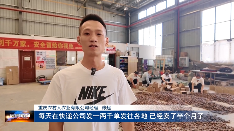 重庆农村人农业有限公司 经理 陈超:“ 阳荷我们每天在网上能卖四五千斤,各个平台都在卖,淘宝、抖音,拼多多的单子比较多,一天一两千单。每天在快递公司发一两千单发往各地,已经卖了半个月了。”