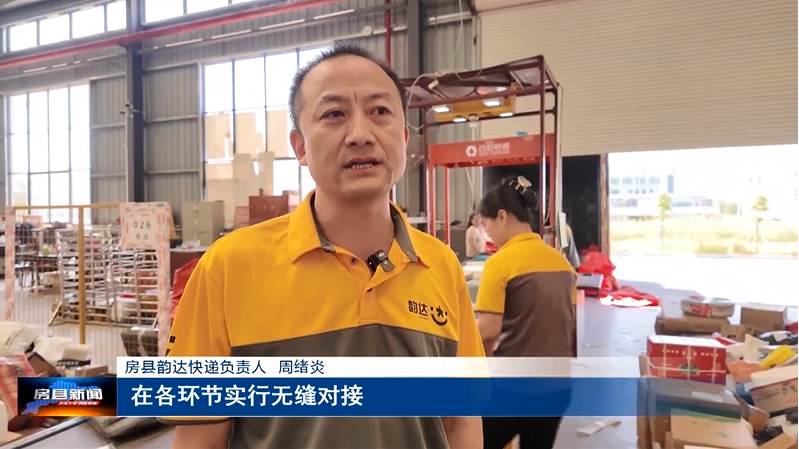 房县韵达快递负责人 周绪炎:“我们每天的发件量就是上千件,现场打包揽收,每天分组派出专车运输,在各环节实行无缝对接,对农副产品上行开辟绿色通道,保证当日揽收邮件以最快的时效发出。”