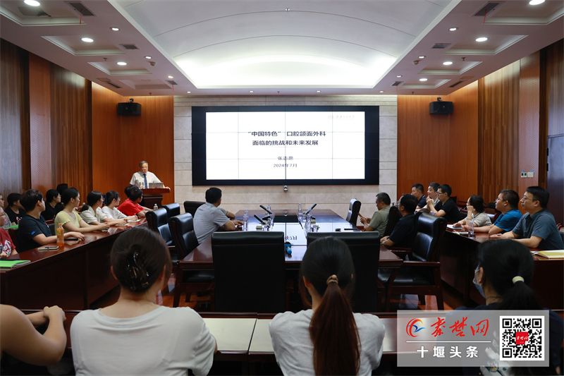 当天下午,院士专家团队在该院开展学术讲座和座谈交流。十堰人医副院长、口腔医学中心学科带头人胡图强教授,该院青年科研人员、口腔医学中心学科骨干及在读硕士参会。会上,张志愿院士以“‘中国特色’口腔颌面外科面临的挑战和未来发展”为题作精彩报告,详细讲述中国口腔颌面外科发展历史和口腔颌面肿瘤最新研究方向等内容。座谈交流环节,张志愿院士对青年科研人员提出的问题和困惑进行一一解答,对青年医生们寄予厚望,鼓励大家要不断学习进步,争取为推动中国口腔医学专业发展贡献应有的力量。