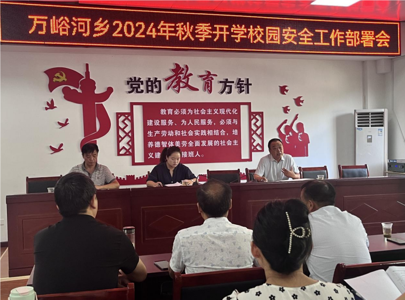 周密部署,强化责任。中心学校负责人强调了校园安全工作的重要性,指出校园安全工作是学校一切工作的基础,必须摆在首要位置。随后,由万峪河乡中小学校长分别就秋季开学安全工作进行详细汇报,学校各分管工作负责人现场签订新学年度安全责任书,为开学安全工作的顺利开展提供了有力保障。