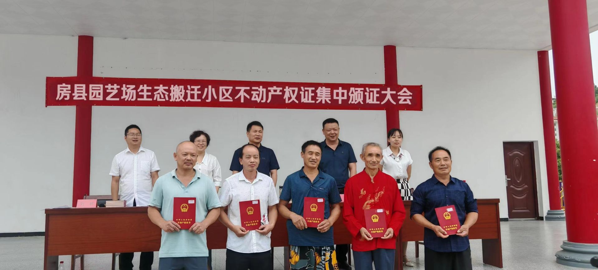 “安置房办证事关子女入学、户口落户、明晰产权等群众切身利益。为加快推进不动产办证,政府在制定解决方案后,一方面与住建等部门联动协作,完善前期首次登记相关登记材料,另一方面安排专人与乡、村对接,核实搬迁户信息、搜集相关身份证明等材料,在户户核实,权籍调查信息无误后,采取‘容缺受理、送证上门’等一系列便民举措完成此次登记。”冀自立在搬迁小区集中颁证大会上对群众说道。