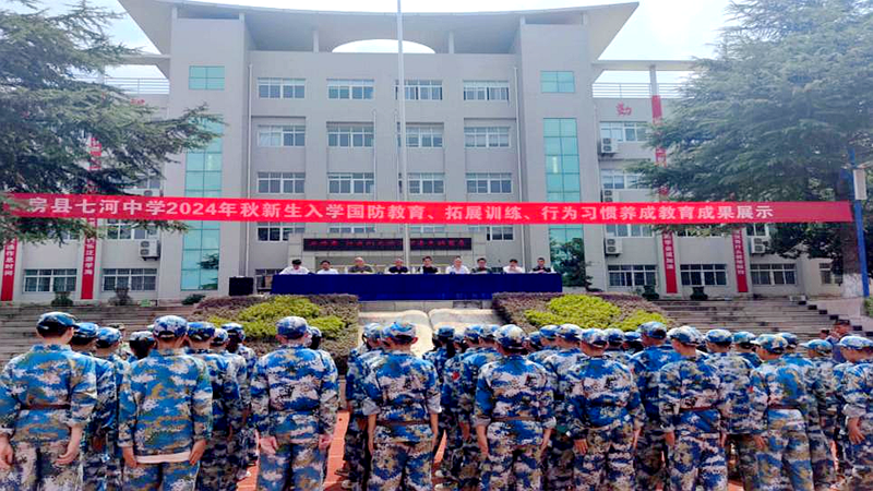 房县新闻网讯 通讯员 王云 胡圣芳 报道:9月6日,七河中学2024级七年级新生军训汇报表演及总结表彰大会举行。