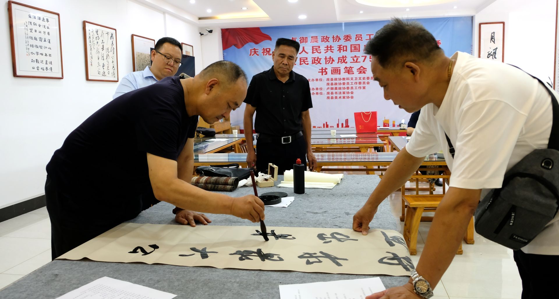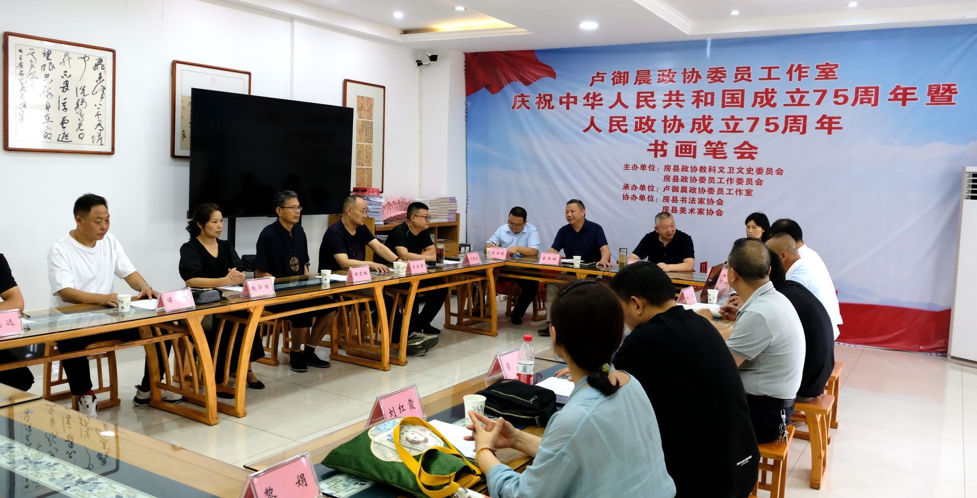 房县新闻网讯 记者 张红敏 报道:为庆祝中华人民共和国成立75周年暨人民政协成立75周年,激发政协委员的爱国热情和共谱中国式现代化房县篇章的智慧,充分发挥政协委员工作室的作用,近日,房县政协教科文卫文史委员会在房县卢御晨政协委员工作室开展书画笔会活动。县政协副主席毛宏明参加活动并讲话,房县书法家协会、房县美术家协会有关同志参加活动。