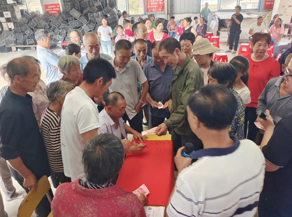 在捐款环节,村民们积极响应,踊跃捐款。五保户冯发福和王恒学尽管生活困难,还是毫不犹豫地各自捐赠了100元,生活拮据的低保户王猛,也坚持捐款200元。他们表示:“提升饮水质量是好事,我们吃的是这里的水,为村里捐款自己也得实惠。”党员兰成华在捐款时发现自己没带现金,二话不说专门驱车回家取钱又赶回现场,为共同缔造项目贡献自己的一份力量。村民刘传芬家庭负担本就不轻,加上孩子今年高考,但是当她听说村里正在修缮饮水设施时,还是毫不犹豫地捐出了200元。外出创业人士郑宜华和李洪武虽然身在他乡,但仍心系故乡,分别捐赠了1000元。这种精神感染了在场的每一个人,大家纷纷表示要为共同缔造美好家园贡献自己的力量。
