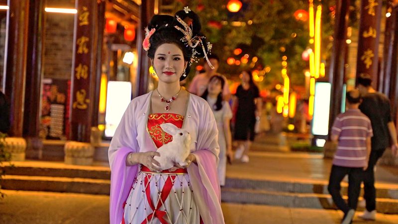 房县西关老街文旅有限公司董事长罗良军告诉记者:“除了经典的周礼迎宾、主题晚会、汉服游园、歌舞表演等常规活动外,我们推陈出新,策划了“嫦娥下凡游西关”互动演艺活动,嫦娥仙子将在街区随机与游客互动,分享中秋的古老传说和美好祝愿。”