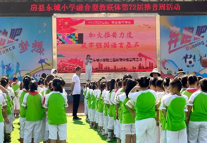 房县新闻网讯 通讯员 李英 李琴 报道:在第27届全国推广普通话宣传周到来之际,县东城小学举办系列活动,以“加大推普力度 筑牢强国语言基石”为主题,在全校范围内营造了浓厚的推普氛围。营造浓厚氛围。活动伊始,在学校大门、教学楼处张贴以宣传推广普通话为主题的标语和宣传画,学校综合楼电子屏滚动“推广普及普通话,奋进新征程”“说普通话,迎四方宾客;用规范字,显华夏文明”等宣传标语,形成推广普通话、促进语言文字规范化的良好氛围。
