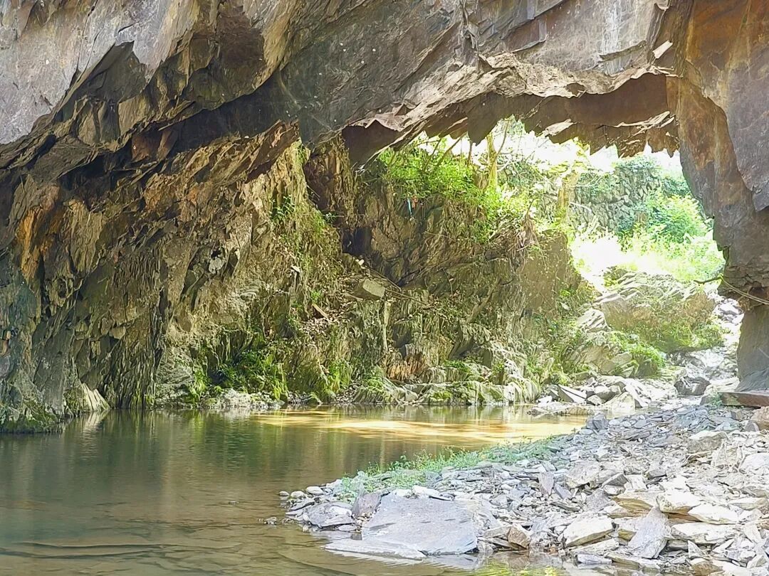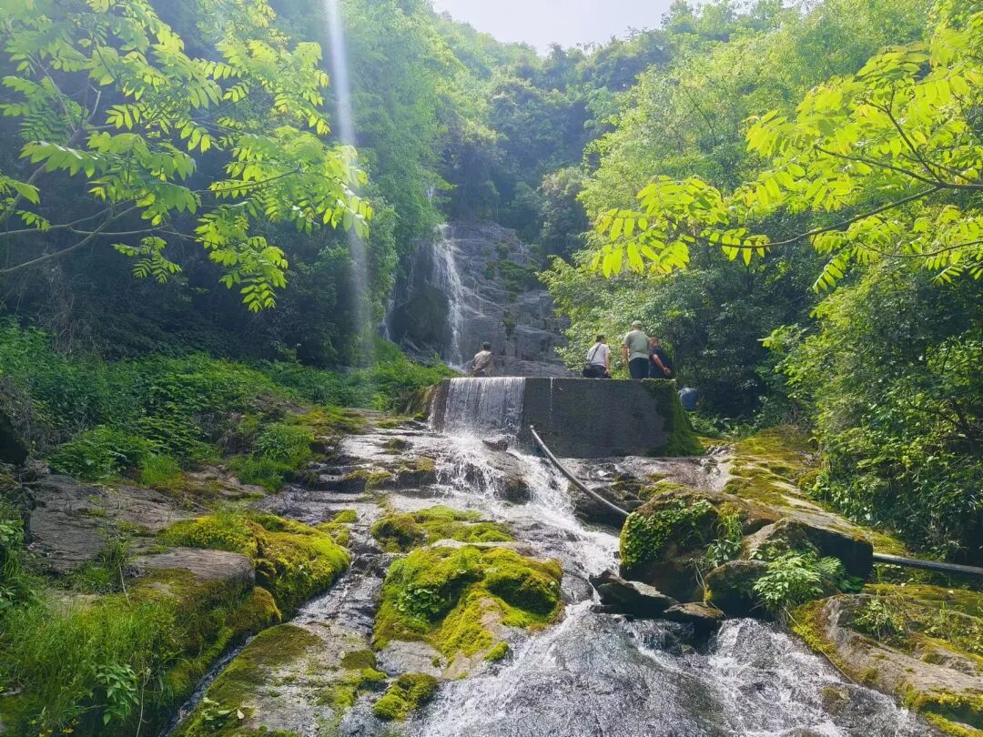 一帘瀑布挂前川,流水淙淙美如画!远离了城市的喧嚣,怡然地行走在乡村的小路上,呼吸着新鲜空气,感受着那一缕缕阳光照耀在两旁的树木、瀑布、身上,享受大自然的馈赠与阳光的温暖。一行人说说笑笑间,手挽手来到瀑布前,或低下头抚摸绿色的青苔、或在小瀑布旁捡起小石头用最帅气的姿势打个漂亮的水花、或驻足在瀑布前近距离观察瀑布流下的壮观景象,在斑驳光影中,腾起的白色水雾在阳光的照射下出现道道彩虹,美极了!