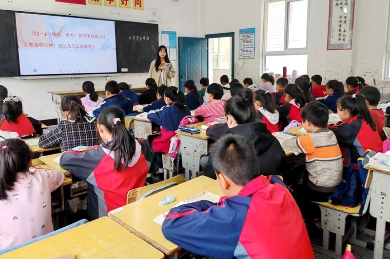 在研讨课展示环节,代玉逍老师执教的《爬山虎的脚》一课。课堂上,代老师设计了图文对照认识爬山虎的脚,让学生直观了解到爬山虎的脚长在哪儿,它是怎样生长的。不仅让孩子们了解爬山虎的特点,更培养了他们的观察力和表达能力。徐璐执教《普罗米修斯》一课,徐老师在课堂的导入环节,通过生动的故事讲述和富有感染力的语言,成功吸引了学生的注意力。她巧妙地引导学生进入古希腊神话的世界,为后续的文本解读奠定了良好的基础。这种引人入胜的导入方式,不仅激发了学生的学习兴趣,也为整堂课的教学氛围奠定了基调。徐东兴老师指教《牛郎织女》他引导学生借助第一部分的思维导图,对课文进行回顾。学生们在回忆故事内容的过程中,不仅锻炼了逻辑思维能力,还提高了语言表达能力。在徐君老师的数学课上,注重引导学生亲历操作过程,让学生经历数、剪、拼等操作活动,从中感悟到"转化"策略的好处。让学生体会到"转化"策略的价值和重要性。