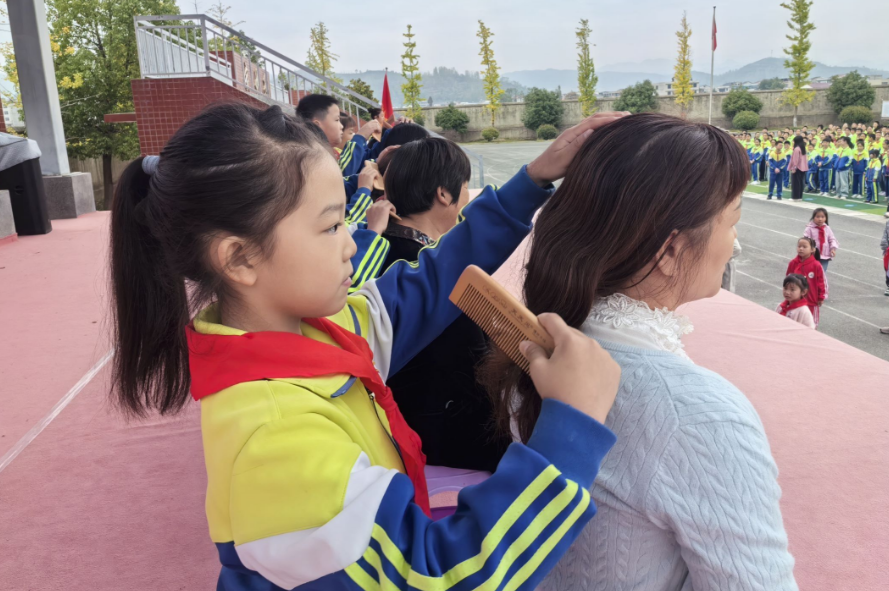 少先队辅导员同时寄语少先队员们,戴上红领巾,就要继承和发扬革命先辈的优良传统,“敬老爱老”更是新时代的好少年所应具备的基本条件。活动当天,学校邀请了部分老人共度重阳佳节,少先队员们为老人梳梳头发、捶捶背,说一句祝福语,队员们用自己的行动将“百善孝为先”的美好品德传承,让老人们感受到了来自下一代的关爱和尊敬。