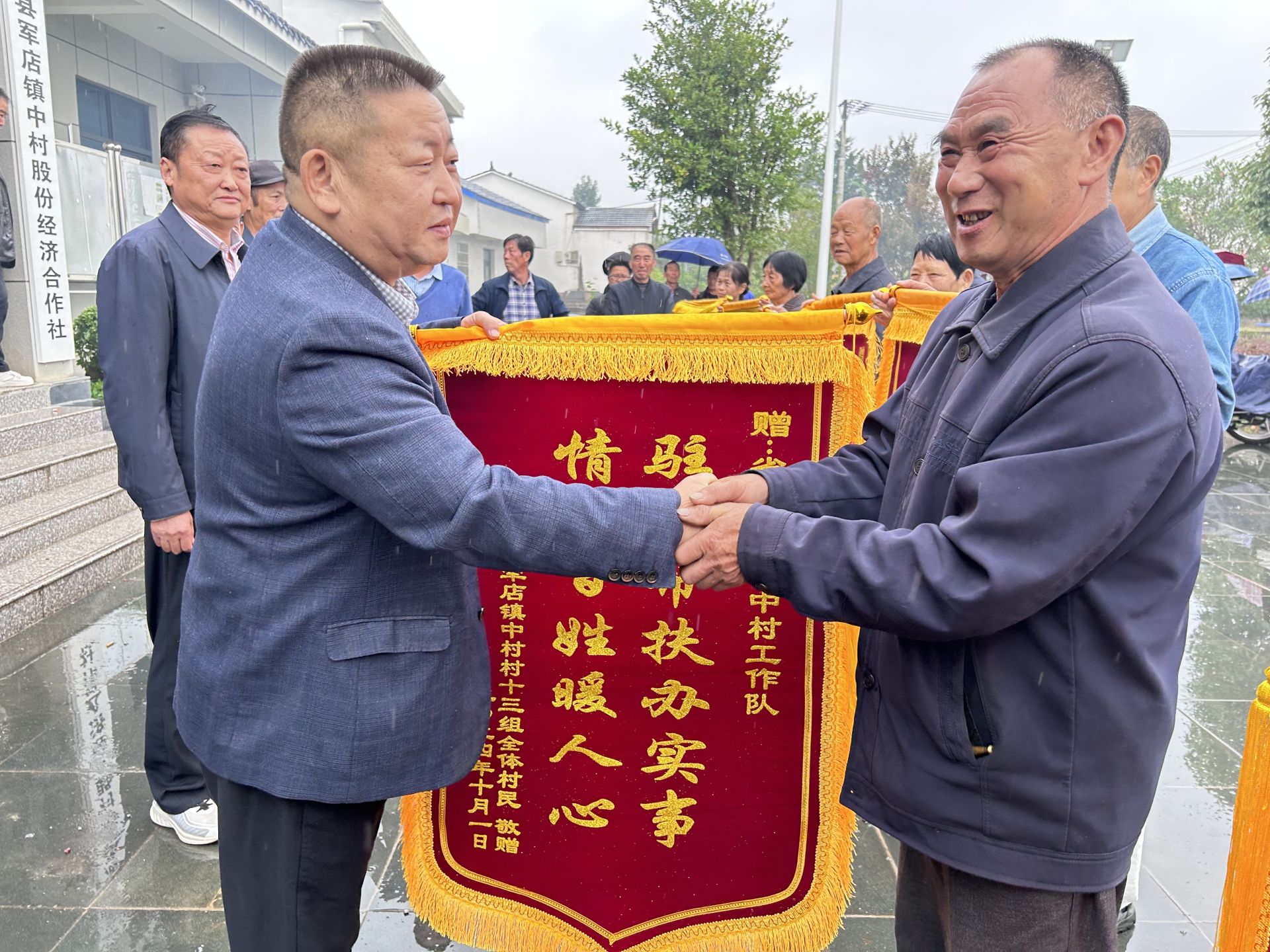 为了表达感谢,他们筹集资金,定制锦旗,一面面印着“真心为民情深似海 党恩浩荡恩重如山”、“驻村帮扶办实事 情系百姓暖人心”、“情系人民 办好事 办实事”的锦旗送到了驻村工作队和村“两委”手中。