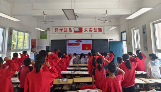 学校以升旗仪式与队会课为契机,各中队辅导员帮助少先队员了解队史、熟知队章,进行“敬队礼、戴红领巾、唱队歌”训练活动,增强组织意识。大队辅导员带领队员重温佩戴红领巾、队徽、唱队歌、宣誓词、呼号等内容,帮助全体少先队员完成基本礼仪规范的复习。