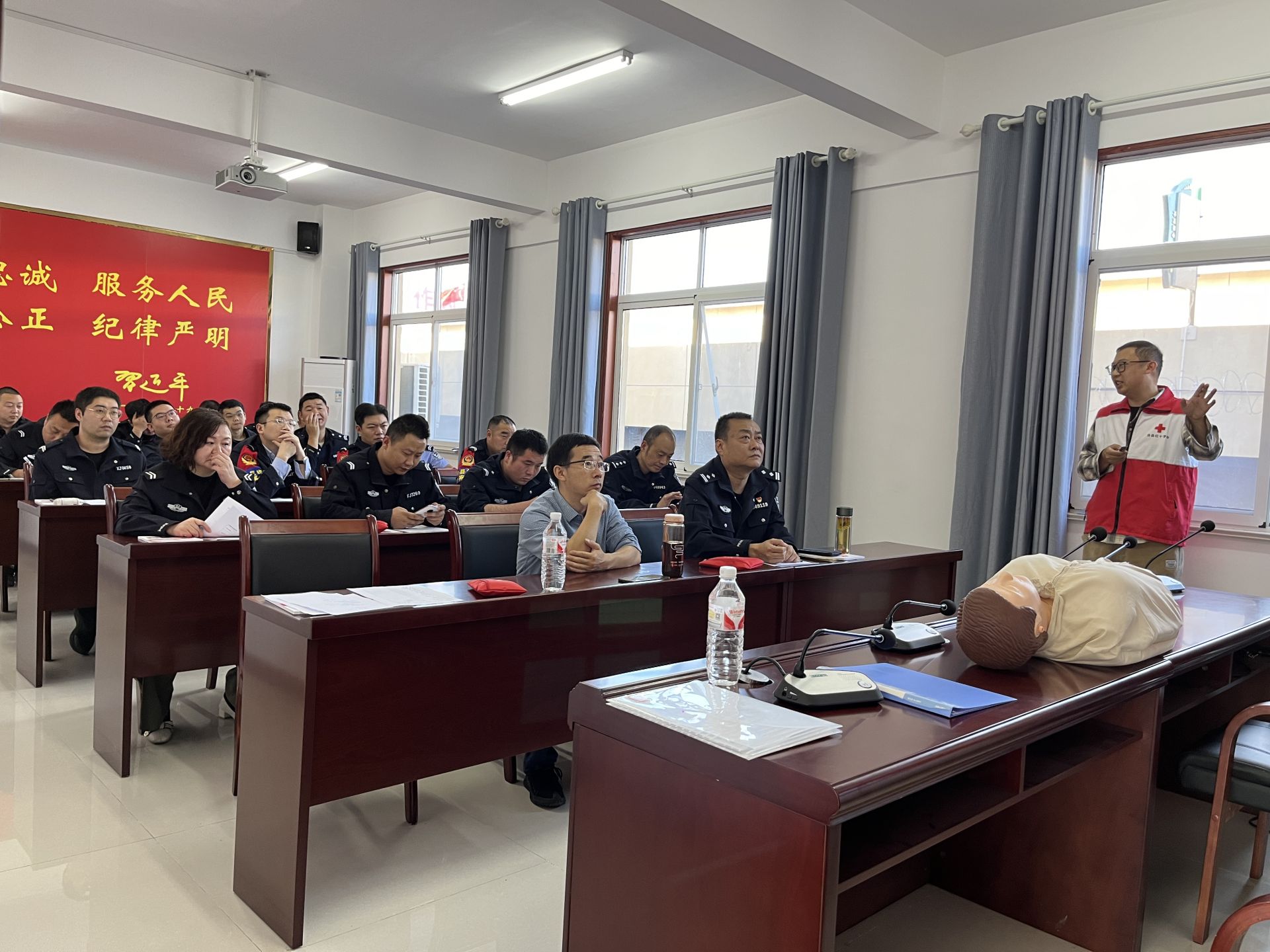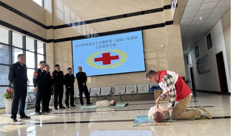 房县新闻网讯 通讯员 陈忠海 报道:10月15日,房县红十字会在县公安局法制大队开展第15期初级救护员培训班,21名民警参加,经考试合格后取得初级救护员证。