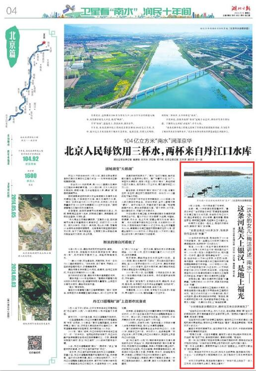 此前一周,79岁的湖北郧阳籍作家、“鲁迅文学奖”“徐迟报告文学奖”获得者梅洁随南水北调工程文化采风团,先后抵达丹江口大坝、陶岔渠首枢纽、中线穿黄、漕河渡槽、惠南庄泵站、团城湖工程等,见证南水三千里北上。