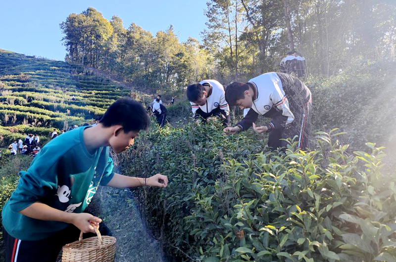 寻茶问道,体验采茶。新鲜的茶叶源自自然,踏入自然的怀抱,感受秋茶的甘香,学生们有模有样,投入采摘活动,体验乡间劳动生活。