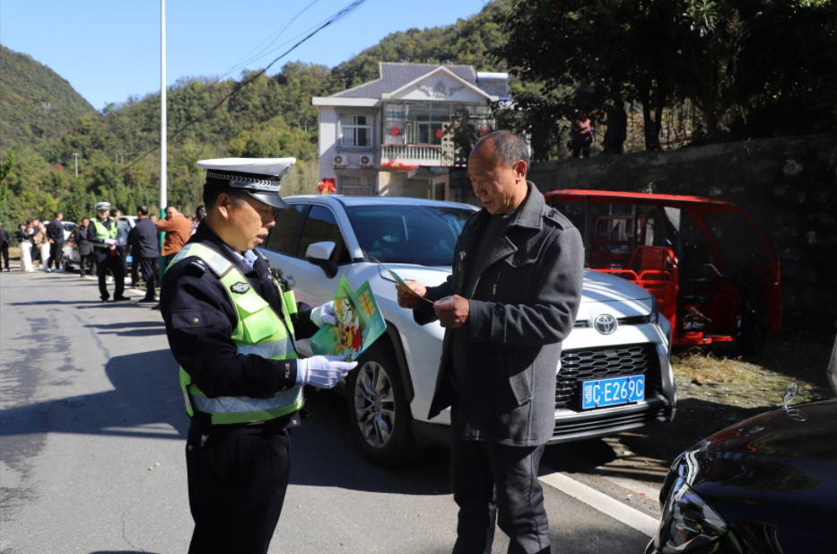 同时,五中队民辅警向参加婚礼的宾客与驾驶员发放交通宣传资料,“面对面”深入讲解了超员、违法载人、不戴安全头盔、不系安全带等交通违法的严重危害性,倡导村民要遵守交通规则,拒绝交通陋习,远离交通违法,注意出行安全。