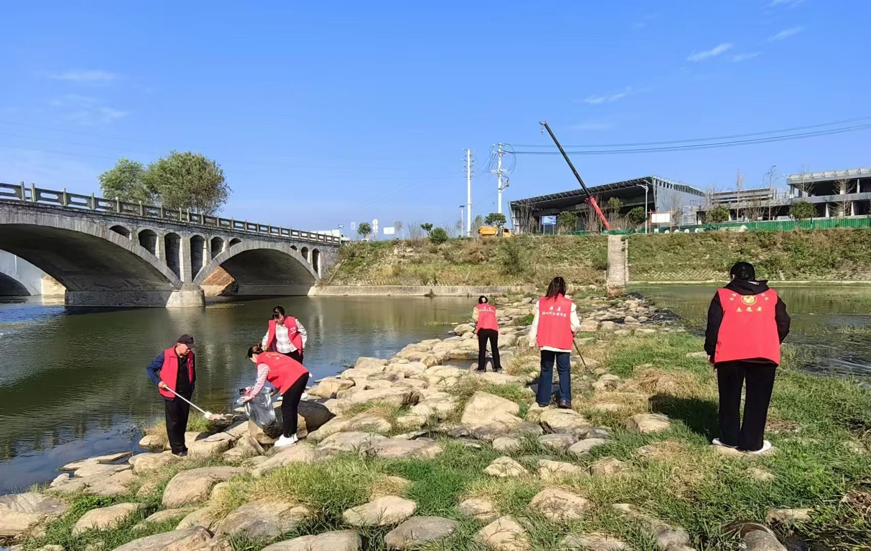 志愿者将河道周边的塑料袋、易拉罐等垃圾清理干净,同时积极向沿河居民进行环保知识宣传,引导大家自觉爱护家园、保护水源。