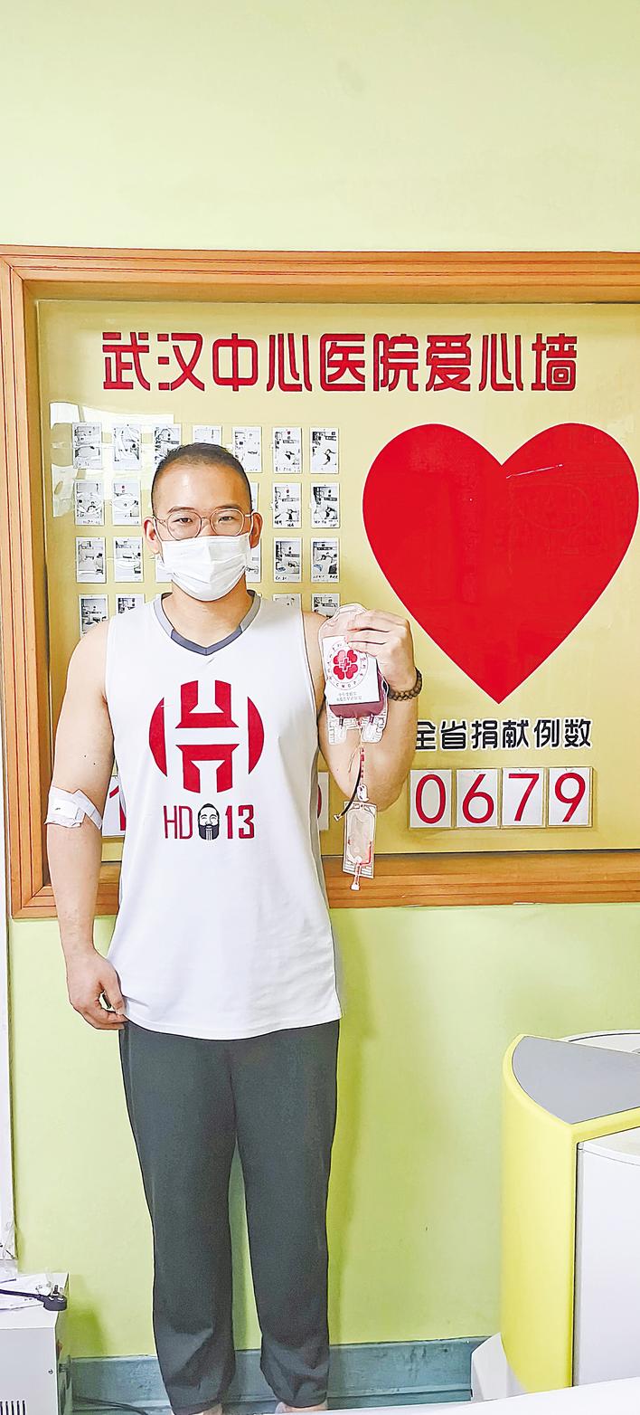 十堰小伙阿铭展示自己捐献的造血干细胞。 (湖北日报通讯员 章晟 摄)