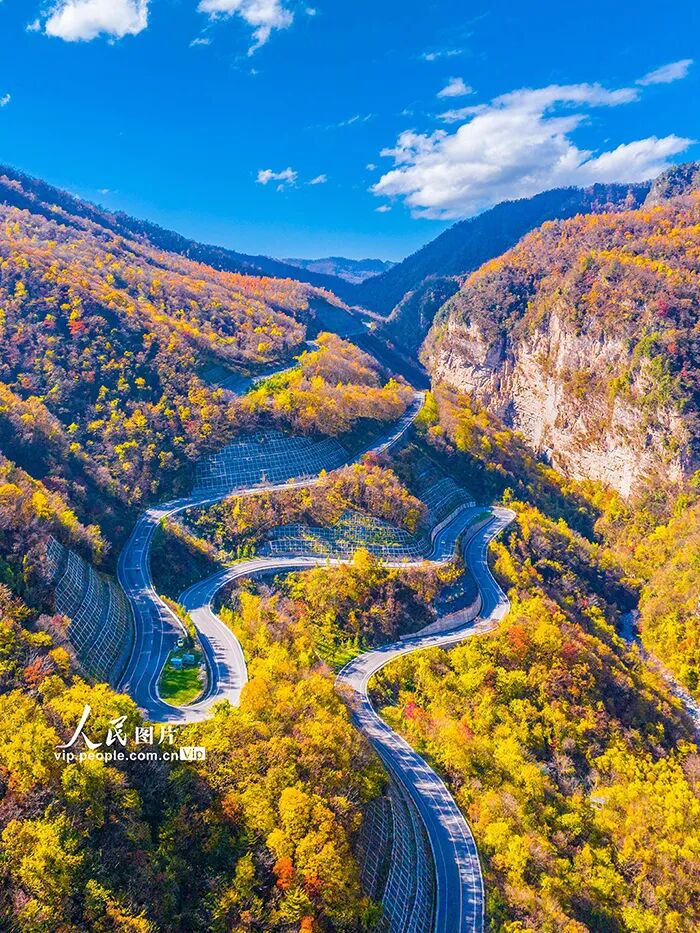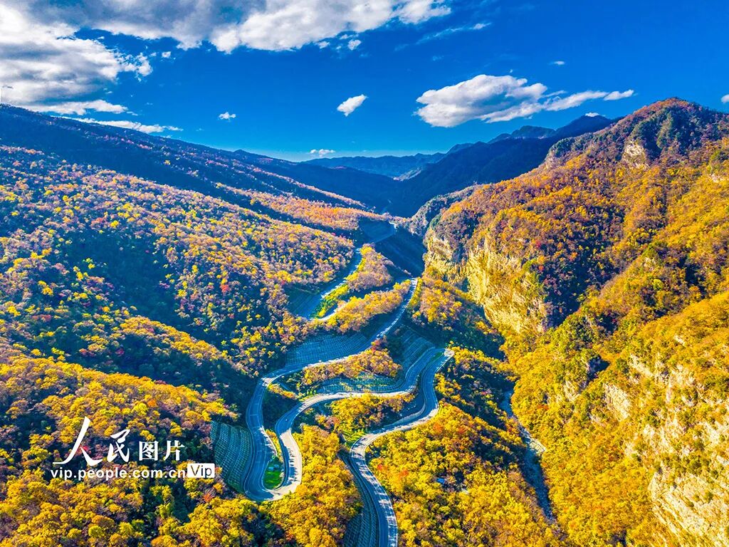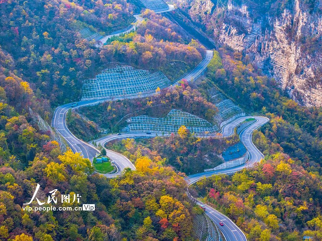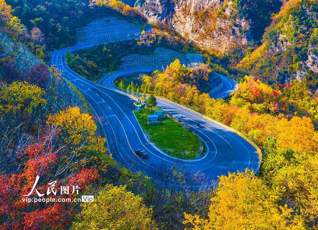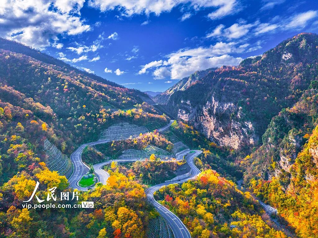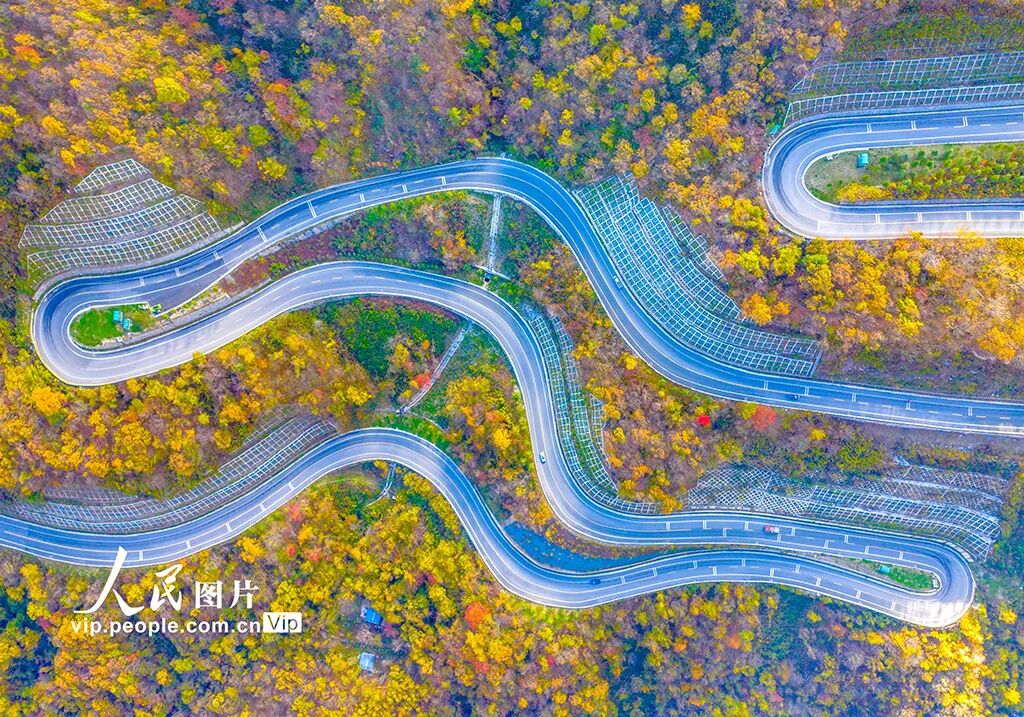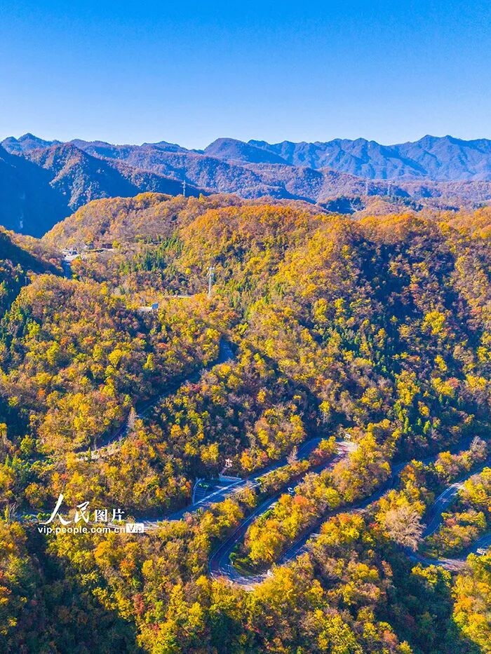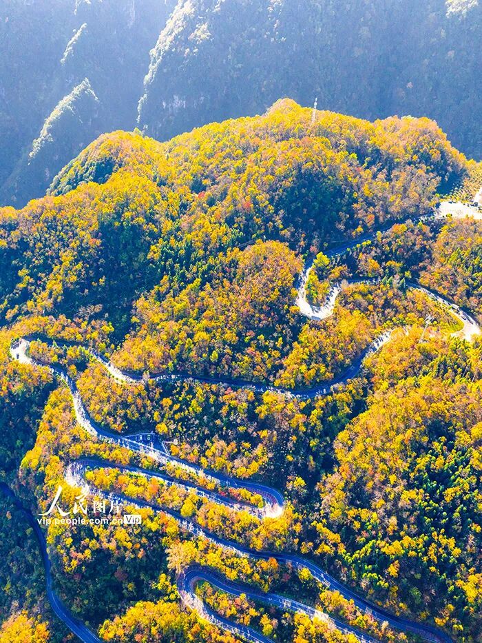 近日,湖北省十堰市房县“十回首”盘山公路两侧群山植被层林尽染,景美如画。胡学军摄(人民图片网)