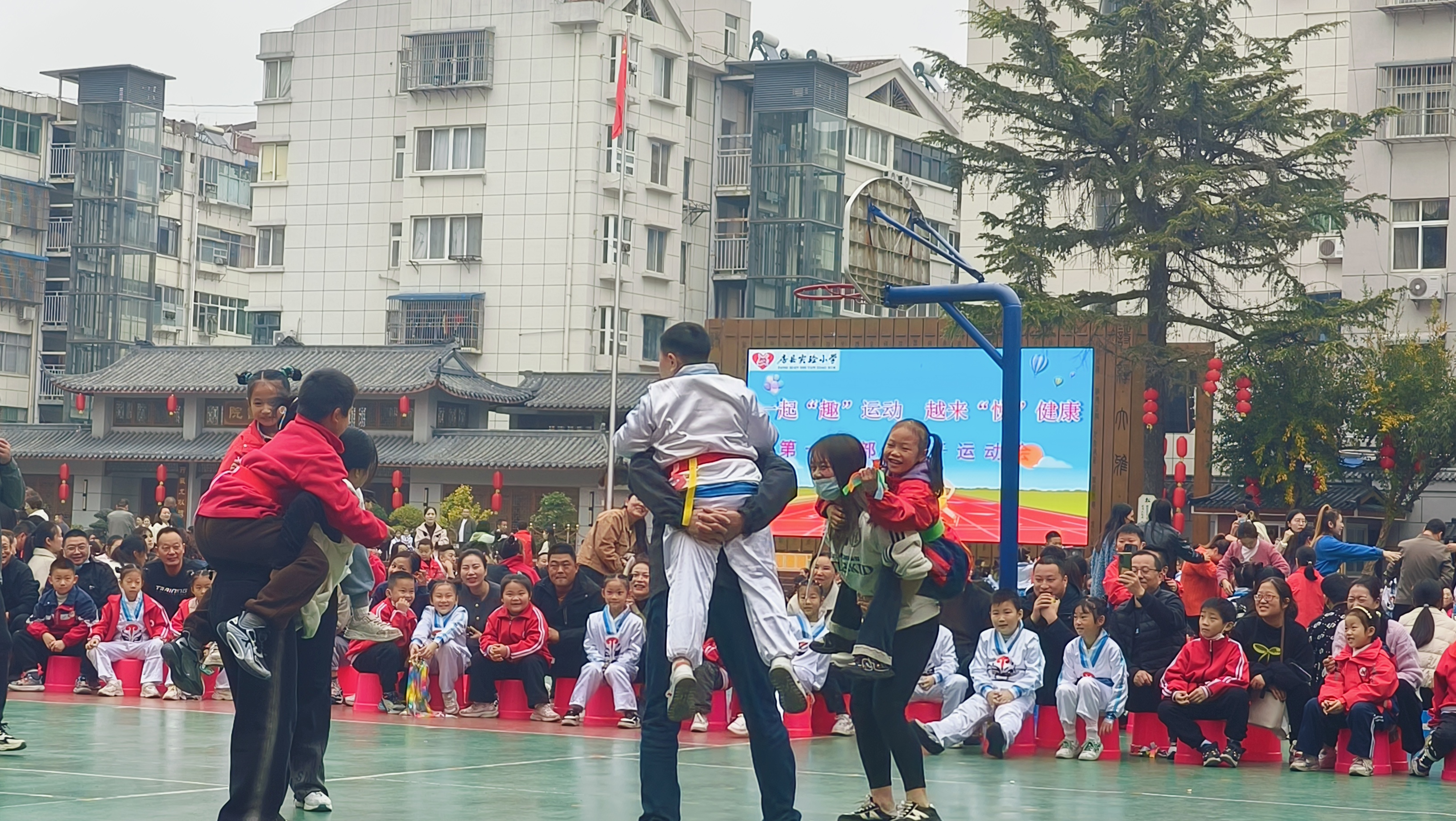 房县新闻网讯 通讯员 许立华 报道:为促进家园共育,助力孩子的健康成长,11月15日,房县实验小学举行了“一起‘趣’运动 越来‘悦’健康”为主题的趣味亲子运动会。