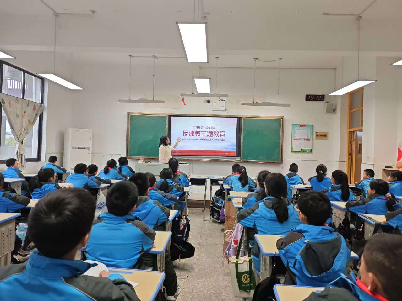 同时,各班级利用班会课开展了《崇尚科学,反对邪教》主题班会。班主任们结合学生的年龄特点和心理特征,用通俗易懂的语言,向学生们详细讲解邪教的危害,帮助他们掌握一些反邪教的宣传知识,了解邪教组织对人们造成的严重伤害,帮助学生们在面对邪教时要坚决做到不信、不入、不传。
