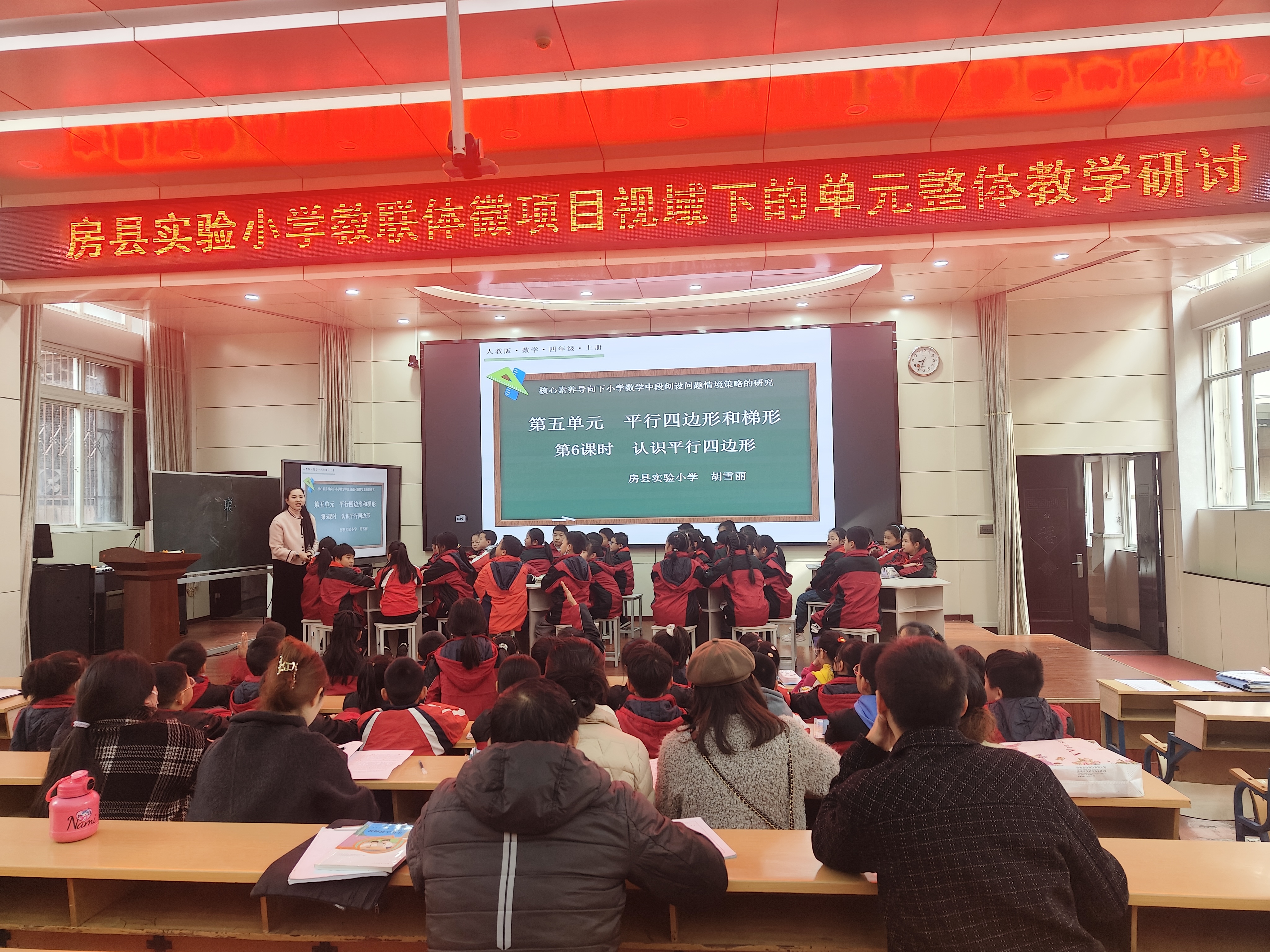 房县新闻网讯 通讯员 胡雪丽 李永觅 报道:为落实《义务教育新课程标准(2022年版)》大单元教学以及微项目视域下的单元整体教学,充分发挥学科育人价值,深化课堂改革。11月21日下午,实验小学进行数学四年级上册《平形四边形和梯形》这一单元第四课时《认识平形四边形》进行课例展示和研讨。