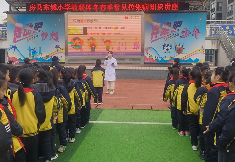 房县新闻网讯 通讯员 李英 刘琼 戢敏 报道: 11月22日,县东城小学教联体充分利用课间操时间,精心组织了一场以“科学预防 健康同行”为主题的关于冬春季常见传染病知识讲座。