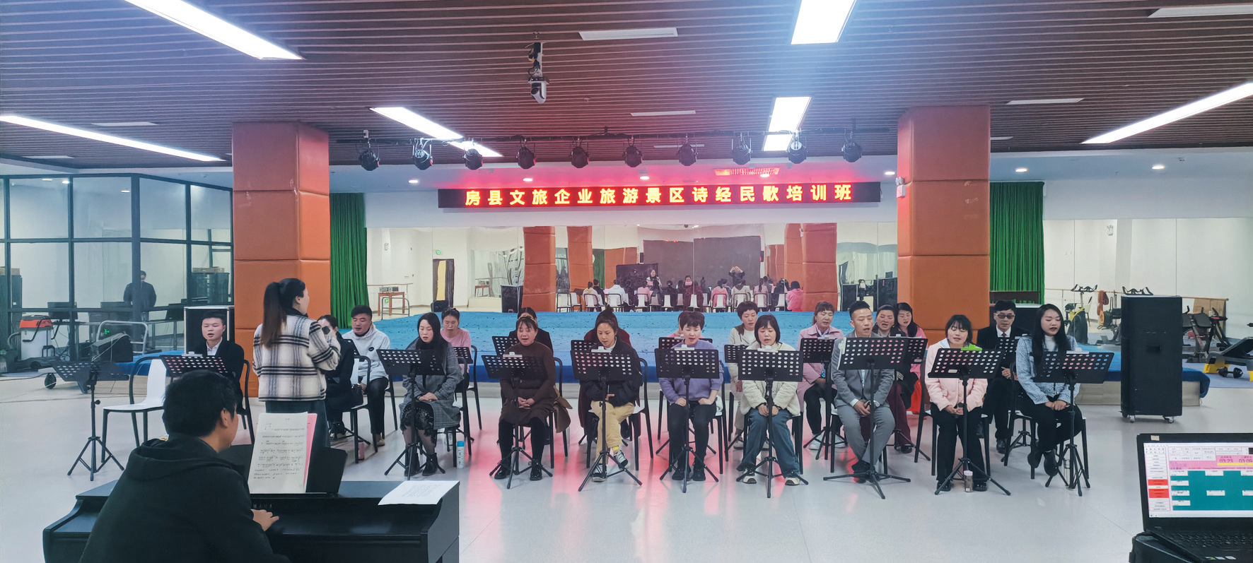 二是开展活动促传承。2010年,中国诗经学会房县研讨会暨中国(房县)诗经文化节在房县成功举办,海内外216名诗经学者专家深入房县考察研讨,形成研讨论文100多篇,12000多人同时咏诵诗经活动被载入吉尼斯世界纪录;在2018年中国第三届诗经文化节上,房县被中国诗经协会授予“中国诗经文化之乡”。以社区文艺骨干为主打造的原生态诗经歌舞节目《山风》先后登上“龙凤呈祥·2012”中国农民春晚、第22届星光奖颁奖晚会、央视《我要上春晚》栏目;2018年,用“和诗以歌”形式精心改编的诗经民歌《关睢》登上央视《经典咏流传》栏目;2024年8月7日,全国民歌展演活动在陕西省榆林市开幕,房陵长歌《诗经民歌联唱》生动演绎诗经文化,表达房县人民对生活的热爱、对爱情的向往。同时,房县组织开展诗经民歌大培训活动,组建女子诗经合唱团;经常性开展诗经民歌进校园、进机关、进社区、进军营、进景区、进酒店等活动,夯实诗经传承群众基层。