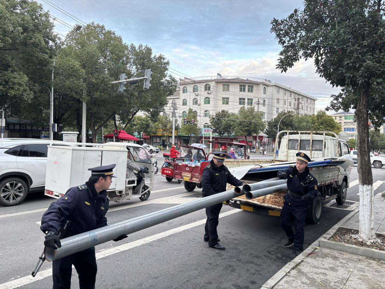 聚焦秩序规范,畅通城市脉络。实行蹲点、管段、包片工作制,加强对市容秩序、油烟噪声、违法建设等方面的监管和执法。深入推进“护学岗”行动,营造安全有序市容环境;增设人行道防冲撞U型栏、石球600余米;更换310余处栏杆醒目标识,疏导流动摊点数1120次;清除乱堆放230余处;拆除违规户外广告18处;拆除违法建设220余平方米;规范非机动车停放数1410辆,通过一系列整治措施,进一步提升城市管理秩序,强化安全管理。