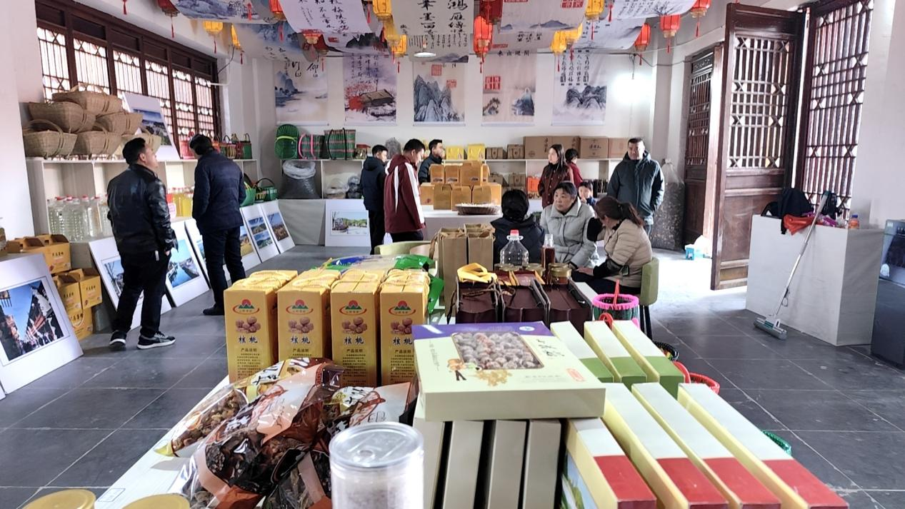 军店镇充分利用此次“房县有好物 全民赶大集”活动契机,举办为期一个月的年货展销活动,货架上琳琅满目的商品均从军店镇20个村精心挑选而来,无论是展现地方特色的红薯粉、瓜蒌酒,亦或是凸显农家风味的烟熏豆腐、腌娃娃菜,都引得广大游客乘兴而来,满载而归。