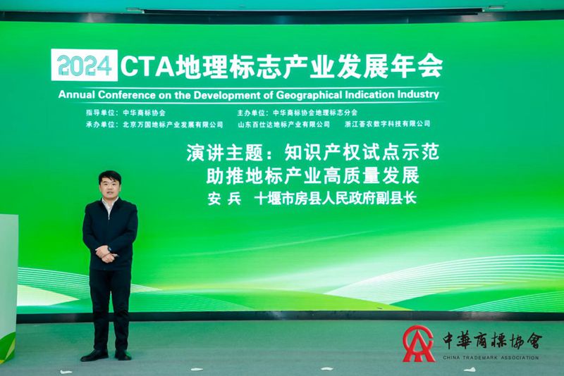 房县新闻网讯 通讯员 郑光泽 金勇 报道 由中华商标协会地理标志分会主办的2024CTA地理标志产业发展年会12月20日在北京举行。我县作为特邀代表,在年会现场做了“知识产权试点示范 助推地标产业高质量发展”的主题演讲。