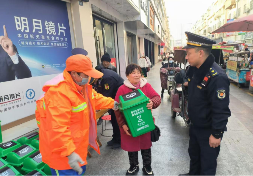 优化配套设施,做好环境卫生服务。为各摊位配备统一的垃圾桶,实现“一摊一桶”,并督促商贩们正确使用,保持摊位干净、整洁、有序,做到“摊在地净、摊走地净”;加强环境整治,全面清理乱堆乱放杂物,机洗+人洗,清洗便民疏导点路面油污,保障道路畅通。