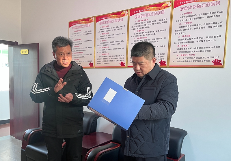 此外,慰问组还查看了县退役军人之家、协会机关建设情况。他们详细查阅了协会的工作档案,对协会在关爱退役军人方面所做的努力与取得的成就给予了高度评价与充分认可。