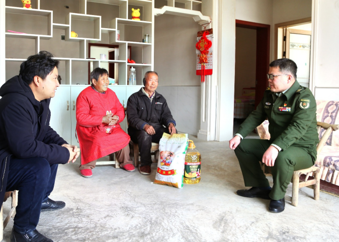 在困难军属李益菊家中,周绍涛政委亲手送上大米和食用油,并亲切交流道:“感谢你把孙子送到部队贡献国防,您要多保重身体,家里有什么困难及时反映,我们驻村工作队一定尽力帮助解决。”“谢谢领导关心,邹强他在部队发展挺好,他打算继续干下去,多为军队建设贡献力量!”李奶奶高兴地说道。