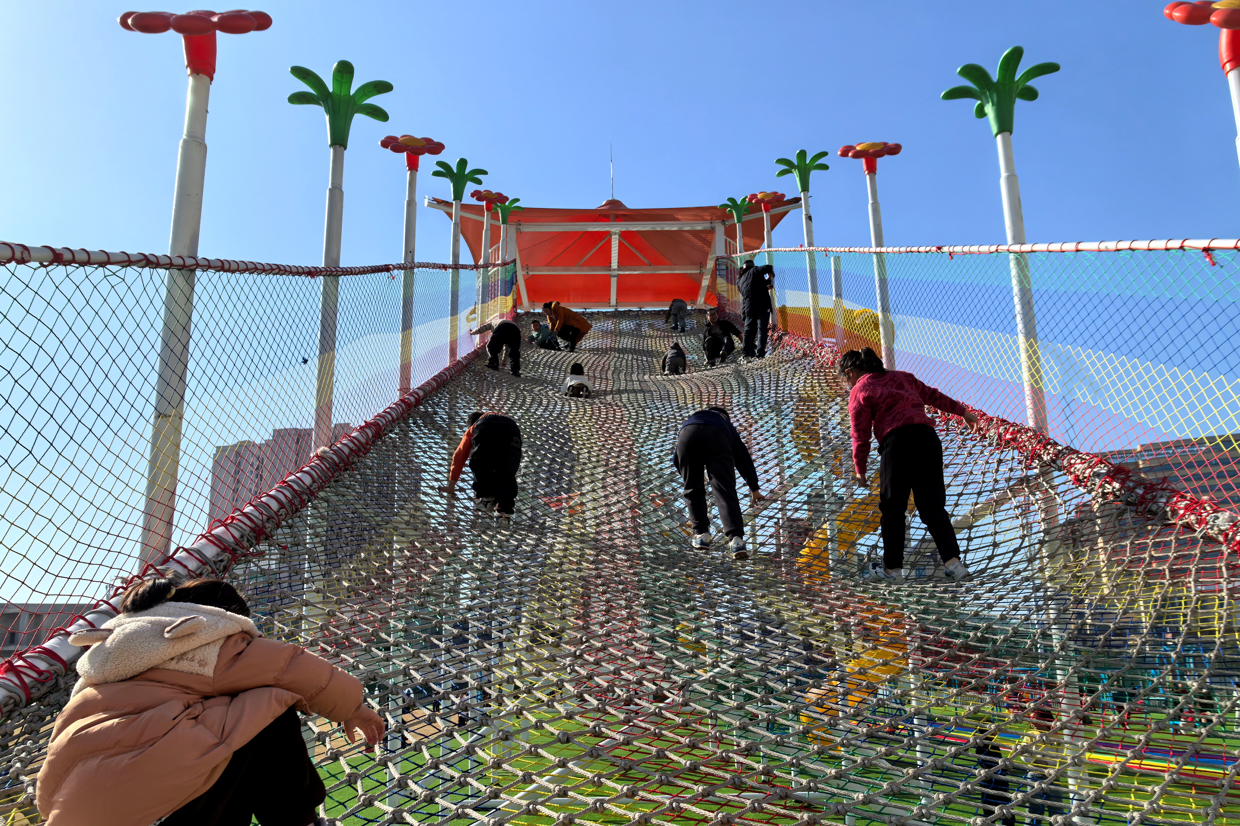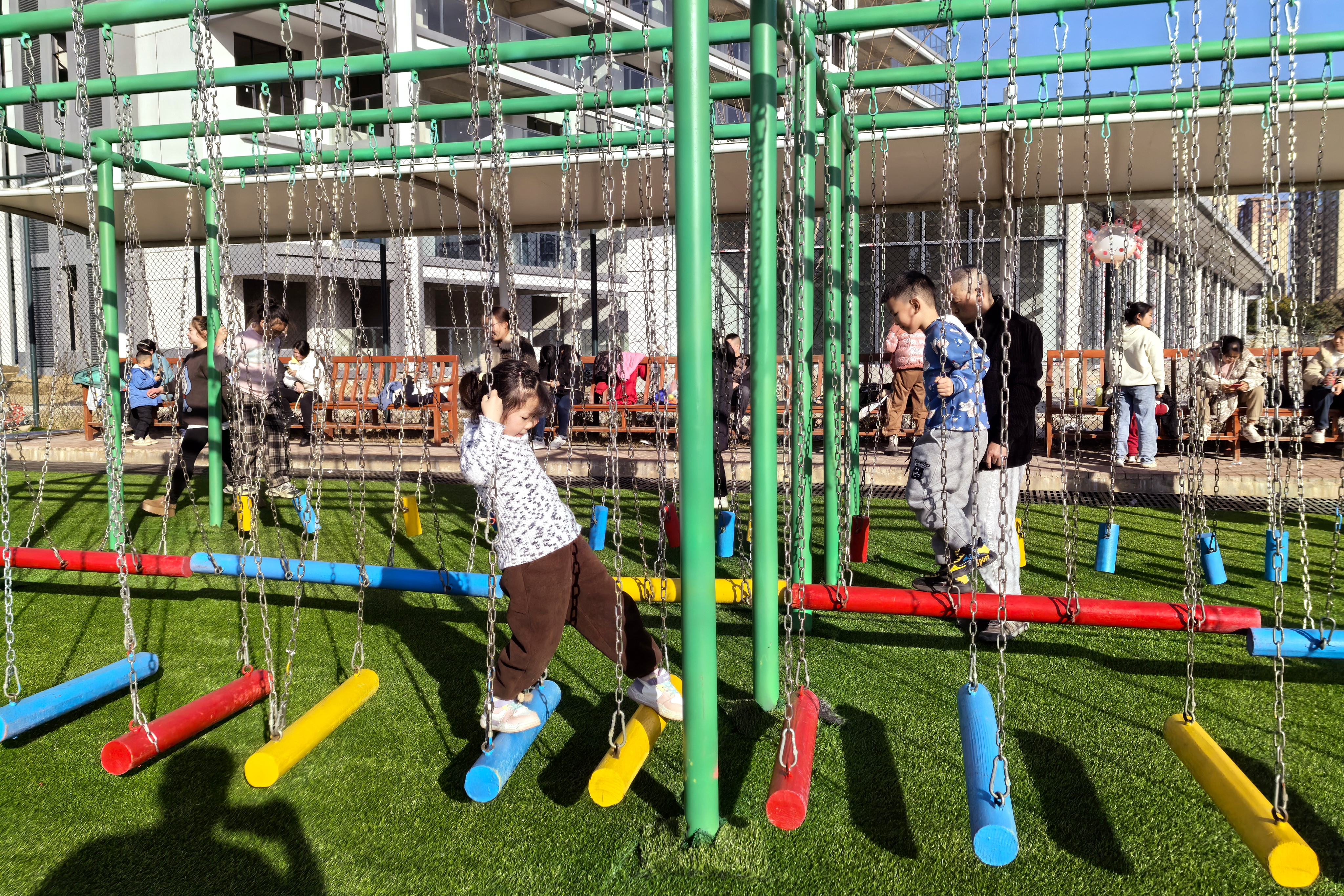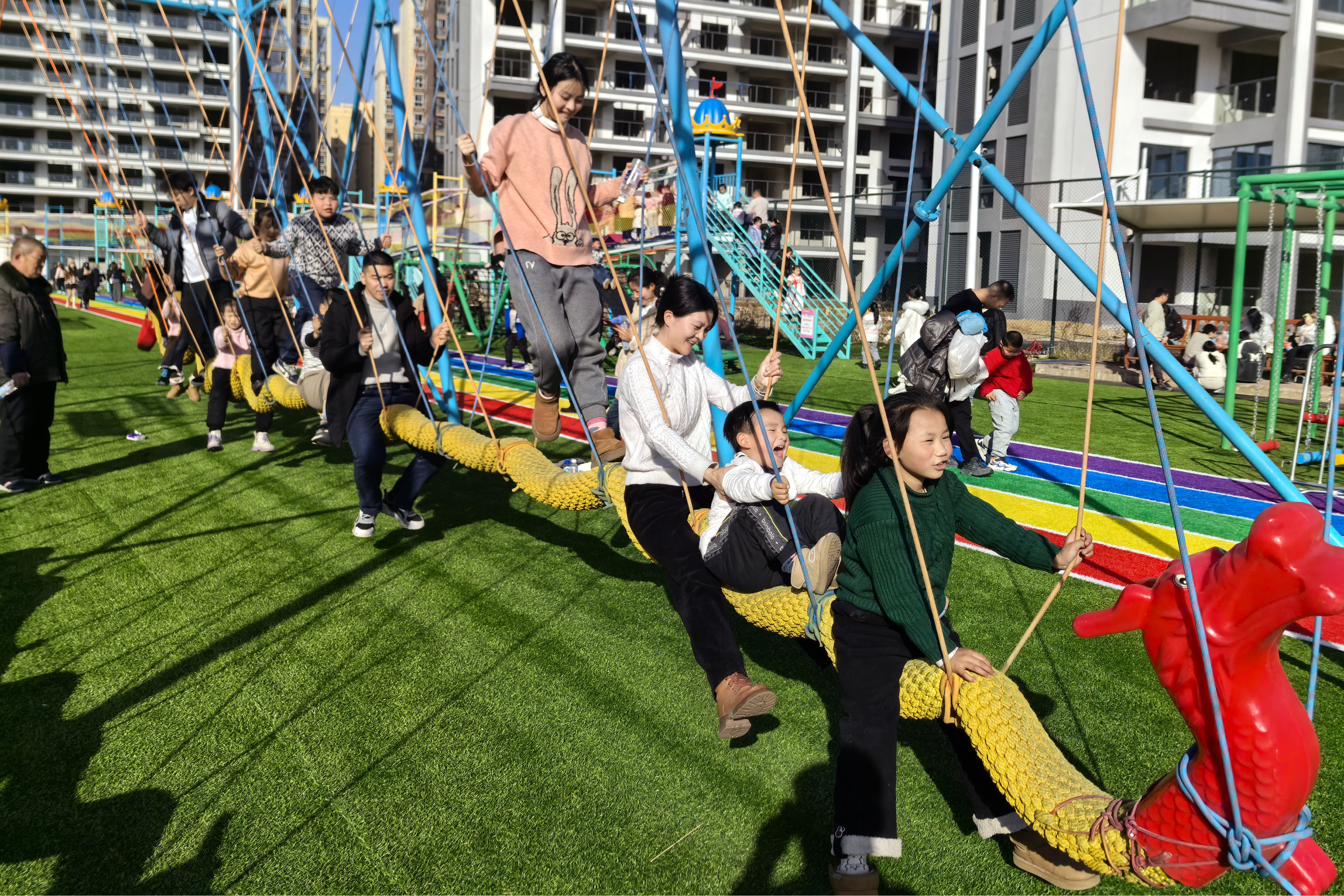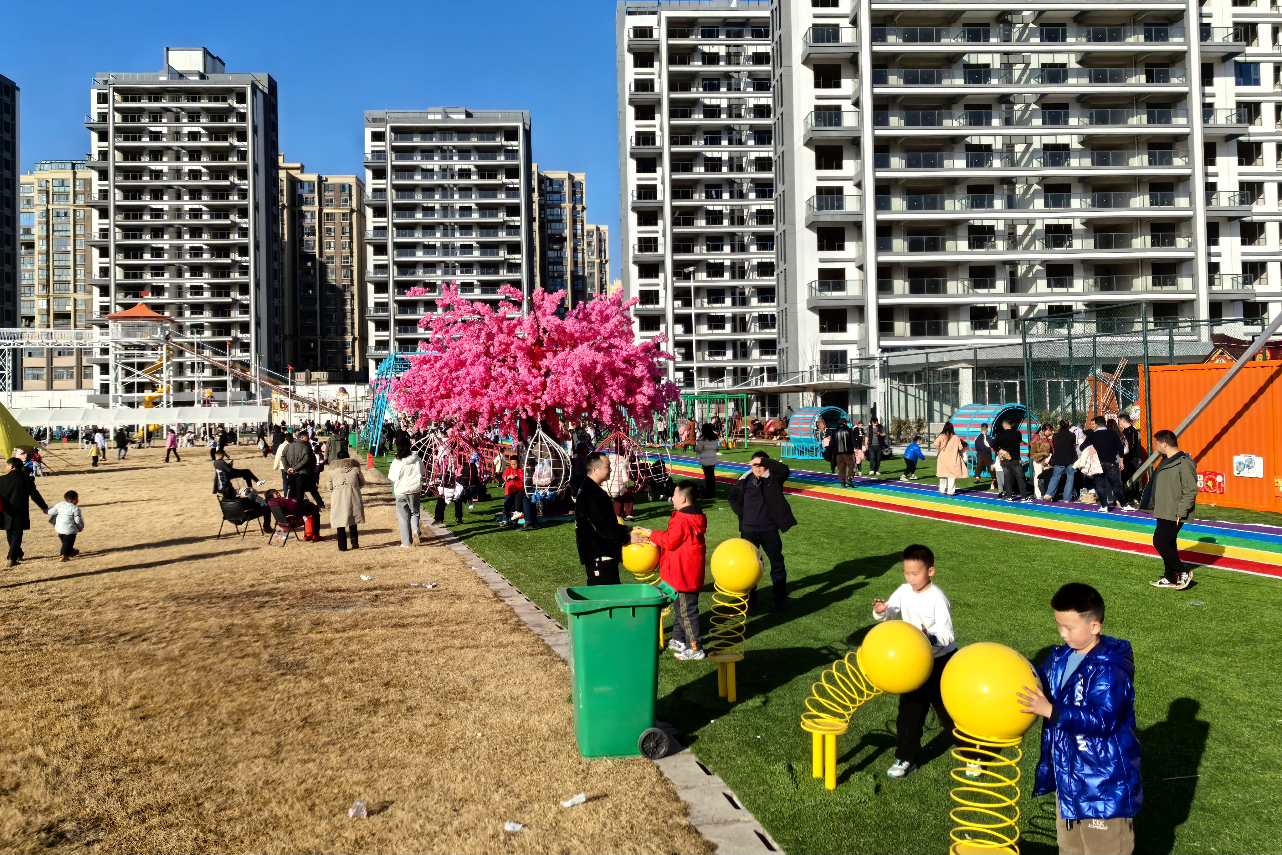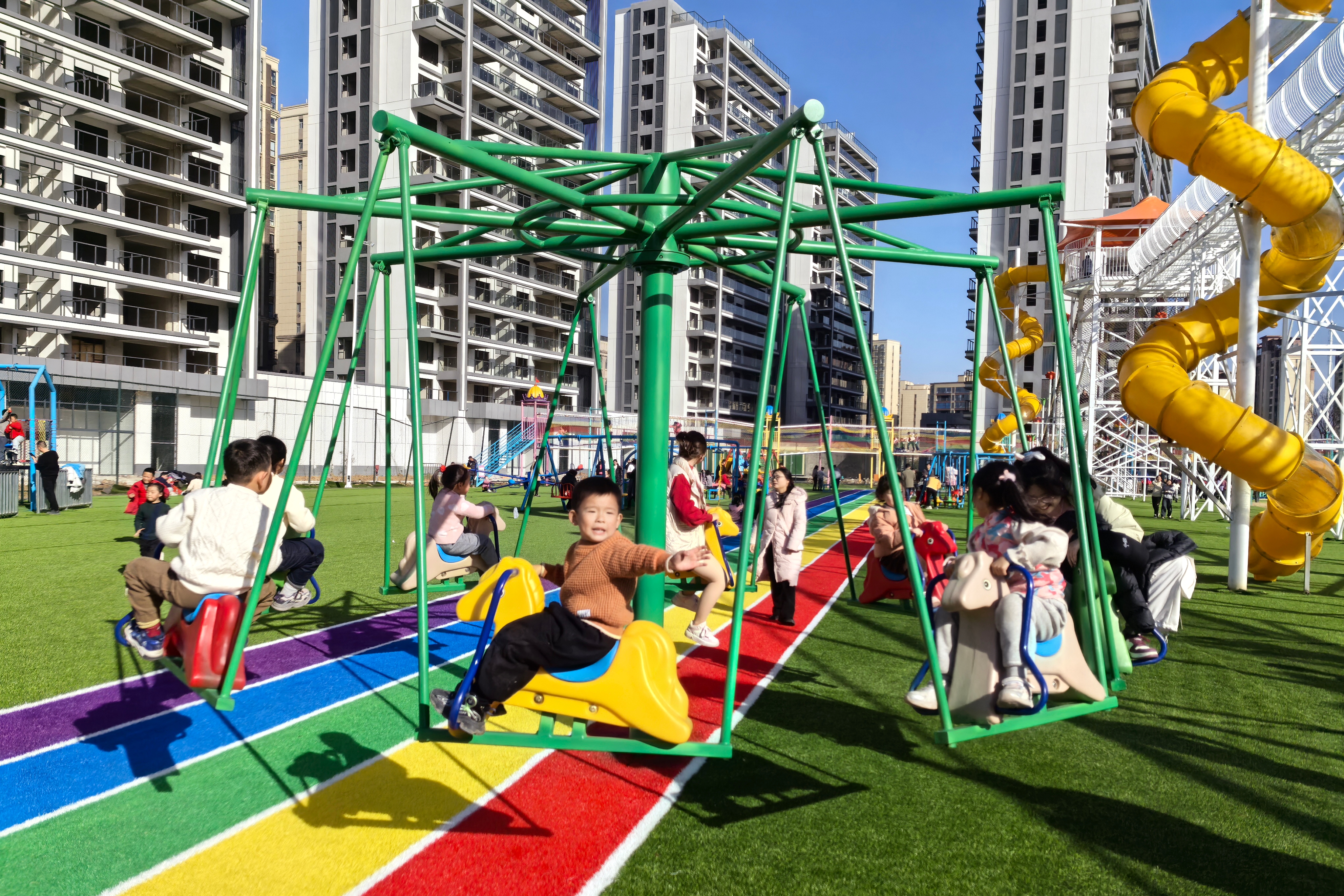 1月28日下午,春节长假第一天,沐浴着冬日的暖阳,吃完团年饭的父母纷纷带着孩子走出家门,来到诗经乐园体验全新的游乐设施。滑梯、秋千、攀爬架、淘气堡、沙池等益智设施,还有一系列动力游玩设施,吸引了众多孩子前来玩耍。