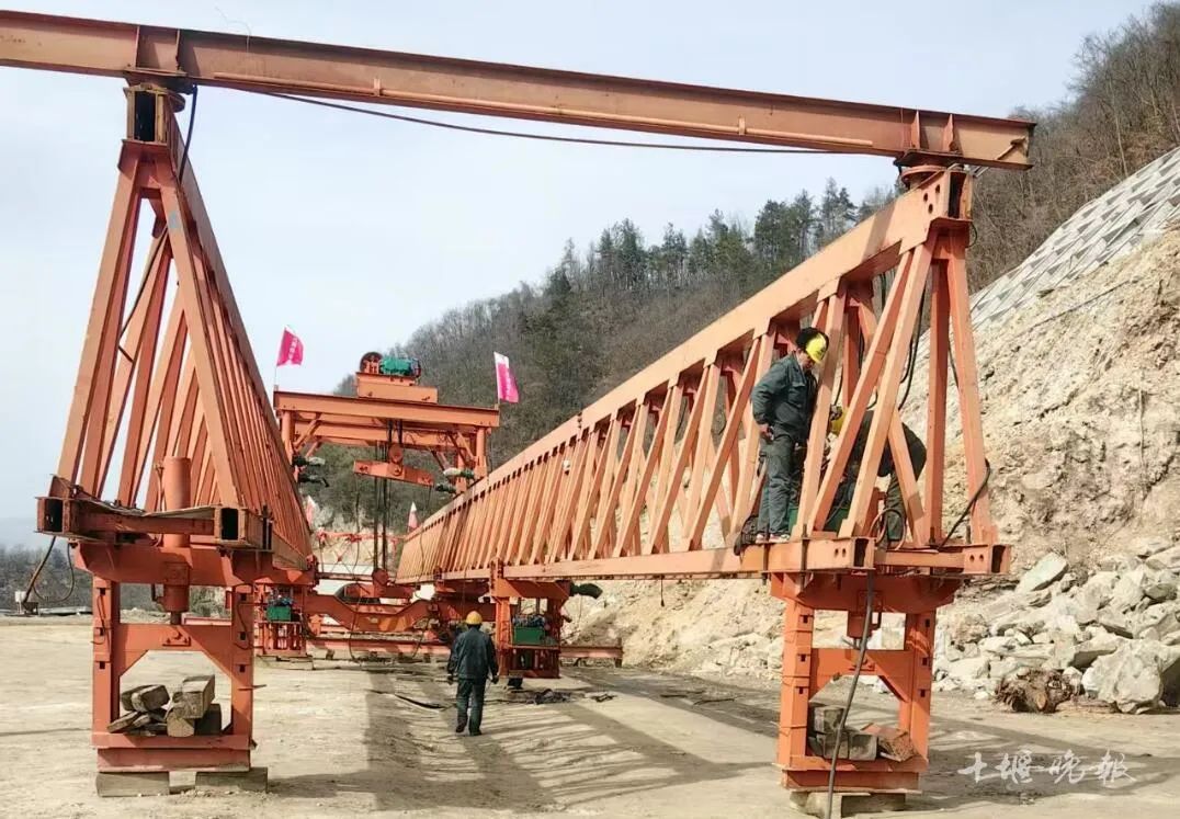 在马家院2号大桥施工现场,巨大的吊机伸展着钢铁长臂,将一片片T梁精准地架设在预定位置。工人们紧密配合,有的在指挥吊运、有的在检查对接部位,现场吆喝声、机械轰鸣声交织在一起,奏出了一曲激昂的建设乐章。