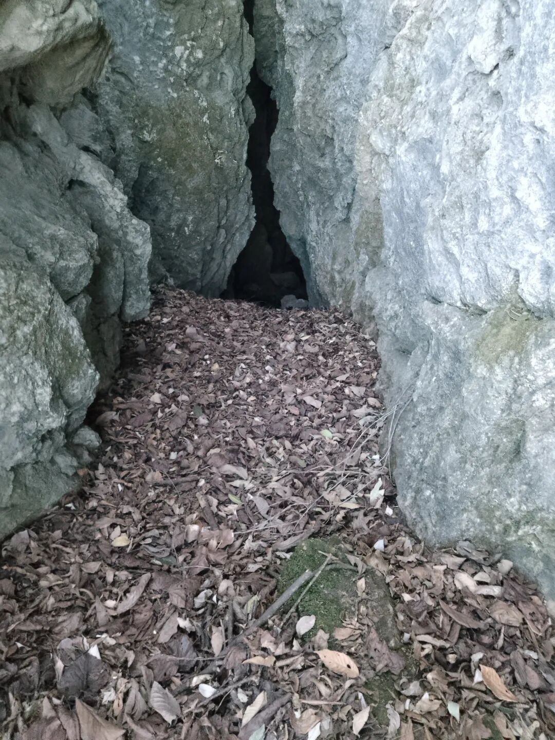 谁知上山的路径居然是先下坡,林间只有一条羊肠小道,几乎辨认不出那是路。长年累月的落叶让脚下软软的,好像踩在某种毛茸茸的动物身上。
