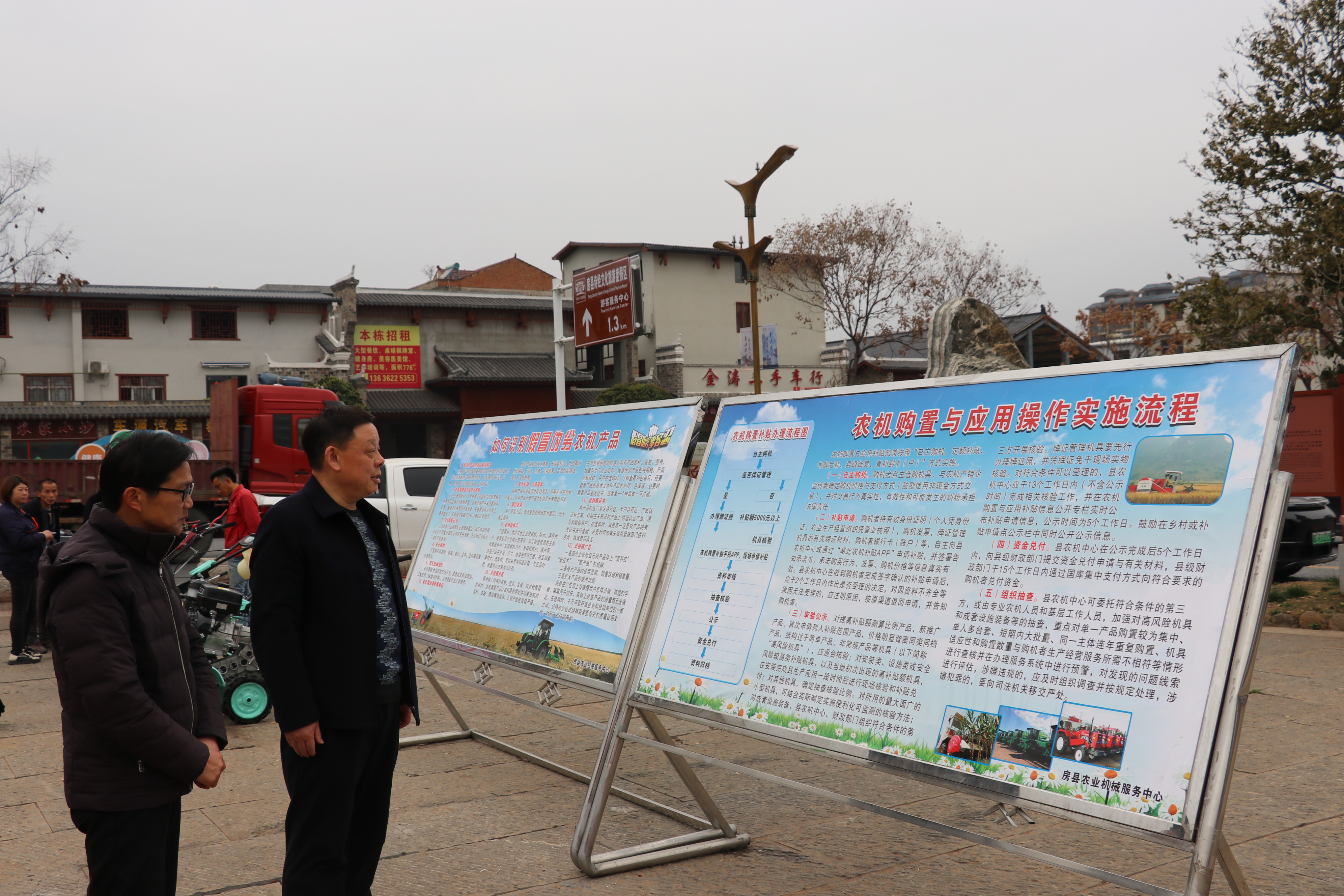为帮助农户规避消费陷阱,农机服务中心在广场显著位置设置两块专题展板:一是《农机购置与应用补贴全流程操作指南》,以图文并茂形式清晰展示补贴申请、机具核验、资金兑付等环节;二是《假冒伪劣农机产品识别技巧》,通过典型案例剖析和实物对比,指导农户从产品标识、质量认证、售后服务等方面辨别正规农机产品。现场农户纷纷表示,展板内容直观实用,为选购放心农机提供了“避坑指南”。