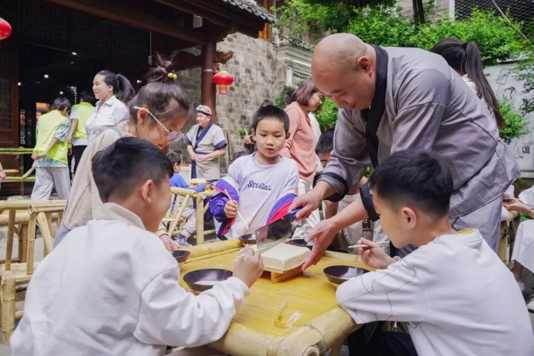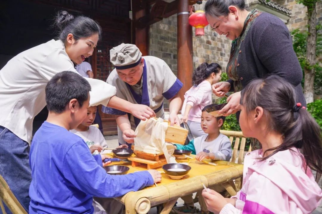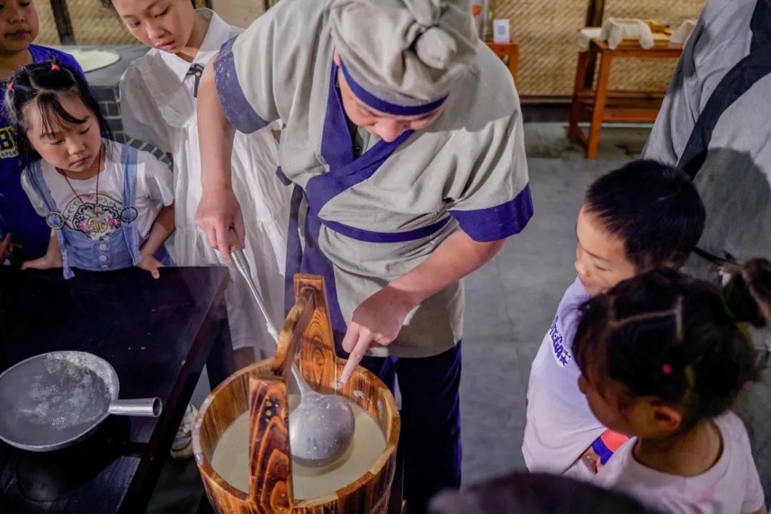 从磨豆、滤浆到点卤、成型,孩子们在亲手实践中感受非遗文化的魅力,收获了一段充满豆香的温馨时光。