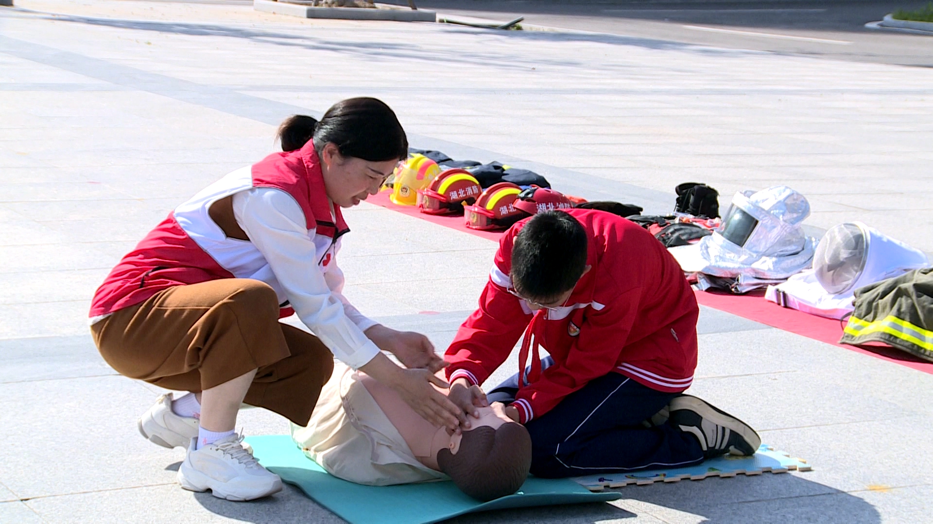 在演练的应急抢险环节,现场模拟了地震造成两名学生被困而受伤,消防队员第一时间开展救援行动,运用楼梯和绳索成功将学生运送到安全位置,由医护人员送往医院救治;还详细讲解了徒 手心肺复苏、海姆立克急救法等常用急救技术。同时,消防队员还组织全体师生参观消防器材、应急抢险救援装备,详细介绍各类装备的功能和使用方法,让师生们近距离感受应急救援的专业性和重要性。