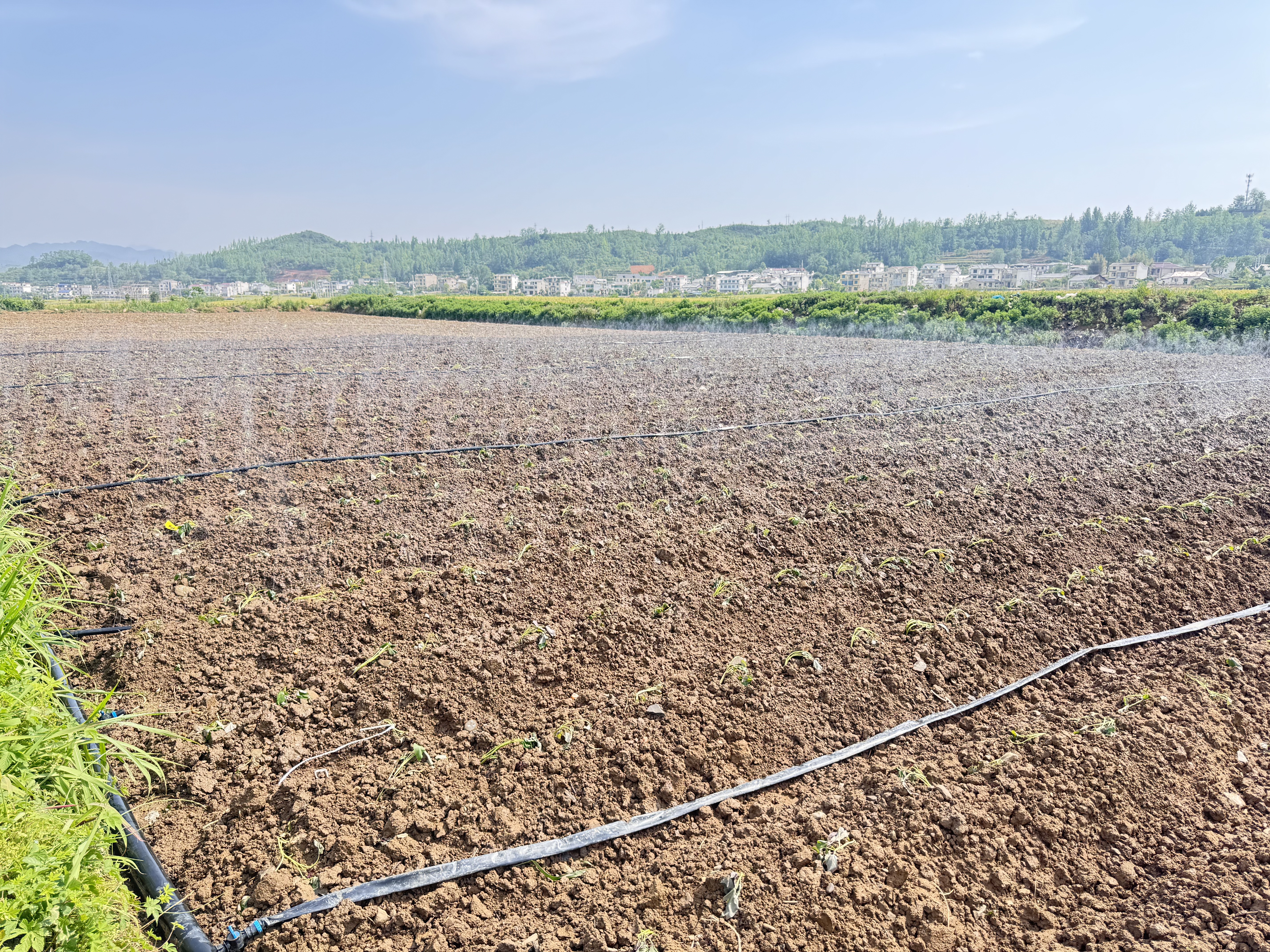 走进红薯地,一条条黑色的喷灌管道沿着田垄铺设,轻轻拧开阀门,细密的水雾便均匀地洒向每一株红薯苗。“以前种红薯全靠挑水浇地,费时费力,现在有了喷灌设备,浇水施肥方便多了,还能节省不少水。”刘大伯笑着说道。在镇农技人员的指导下,他采用了科学的种植方法,从选苗、整地到水肥管理都严格按照标准操作,确保红薯的品质和产量。