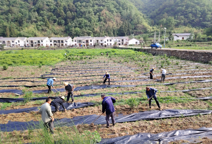 过去茶园除草主要依靠人工,不仅费时费力,还容易对茶树根系造成损伤。为了防止杂草损害茶苗,窑淮镇后河村积极向上争取资源和资金,对新发展的茶园铺设防草布,有效控制杂草生长,更加稳定茶园的土壤湿度和温度,为茶树的生长创造了良好的环境。