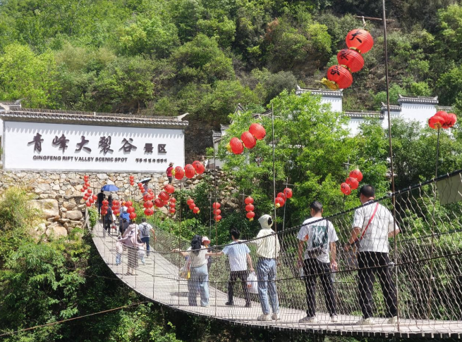 文明创建,生态提质锻造“文明脊梁”。深入践行“两山”理念,推进青峰大裂谷景区生态保护,深化“文明河流”和“六无”乡镇建设。完成高速路口环境综合整治,黑化道路320米,绿化隔离带300米,增设停车位23个,安装路灯20盏。提档升级农村道路5公里,新建交通候车亭5个,安装公路护栏2公里。不断推进生态颜值向经济价值转化,发展特色乡村旅游产业,实现年接待游客3.2万人次,旅游综合收入500万元。
