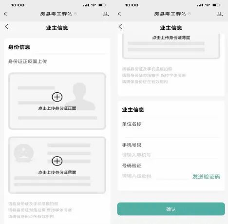4. 登录成功后跳转至业主信息页面,按照要求填写自己的信息,填写完成点击”确认”按钮