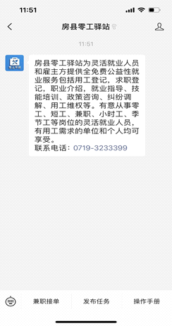 方法二:微信搜索微信搜索“房县零工驿站”公众号并关注